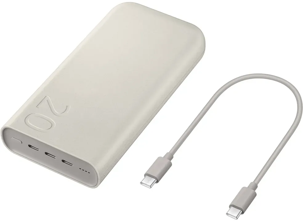 Kategorie: Powerbanks - Samsung - GTIN:8806095312187 - 20.000 mAh Kapazität / bis zu drei Geräte gleichzeitig aufladen / zwei USB Type-C Anschlüsse / USB Type-C auf USB Type-C (30 cm, 5A) in Lieferumfang enthalten - 39,99 Euro bei nullprozentshop.de - gefunden von billiger.de Eine offizielle Samsung Powerbank mit 45 Watt Schnellladung und drei USB-C Anschlüssen für vielseitige Nutzung. ![]() ![]() Samsung Battery Pack 20.000 mAh - 45 Watt Schnellladung - 3x USB-C - Beige - Beige