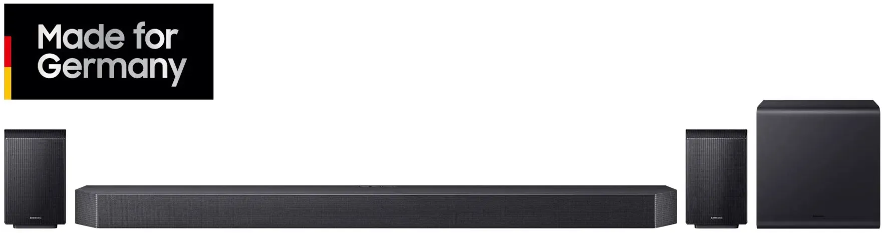 Schlafzimmergarnituren Wohnen Komplett-Einrichtungen - - Bestseller. Lautsprecher: Anzahl Front-Lautsprecher: 2, Anzahl drahtlose Subwoofer: 1, Netzwerk- und Verbindungsarten: Netzwerkstandard: Bluetooth, WLAN (WiFi), Wi-Fi-Standard: a, b, g, n, ac, Bluetooth-Version: 5.2, Netzwerkfunktionalität: AirPlay 2, Bluetooth, Chromecast, Google Home, Musik-Streaming: Spotify, Tidal, Sprachsteuerung: Alexa, Google Assistant, Allgemein: Farbbezeichnung: schwarz, Farbe Lautsprecher: schwarz, Funktionen Lautsprecher: App-Steuerung, Bassregelung, Lautstärkeregelung, Pairing, Kompatible Geräte: Fernseher, Lieferumfang: Fernbedienung, HDMI TM -Kabel, Gummifuß, Wandhalterung, Anschlüsse: Anzahl HDMI-Anschlüsse: 3, HDMI-Arten: CEC, eARC, Audio- und Videowiedergabe: Lautsprecherkanäle: 11.1.4, Klangeffekte: DTS Digital Surround, DTS X, Dolby Atmos, Dolby Digital, Dolby True HD, HD-Audio, Maße Gewicht: Breite: 123,2 cm, Tiefe: 12,8 cm, Höhe: 7,08 cm, Breite Front-Lautsprecher: 12,95 cm, Tiefe Front-Lautsprecher: 14,04 cm, Höhe Front-Lautsprecher: 20,13 cm, Breite Subwoofer: 24,9 cm, Tiefe Subwoofer: 24,9 cm, Höhe Subwoofer: 25,18 cm, Gewicht: 23,8 kg, Stromversorgung: Art Stromversorgung: externes Netzteil, Stromverbrauch Betrieb: 127 W, Stromverbrauch Stand-by: 0,5 W, Hinweise: Sprachen Bedienungs-/Aufbauanleitung: Deutsch (DE), Technische Daten: WEEE-Reg.-Nr. DE: 57.734.404 - Versandkostenfrei: false - Sale: true - Lieferzeit: 3 Tage - product_flag_accessory_wohnen: true - ... Samsung DE selbst bietet die Soundbar für 1079 Euro an, was die offizielle Quelle und somit eine sichere Wahl ist. ![]() ![]() Samsung Q-Serie Soundbar HW-Q995GF 11.1.4-Kanal Subwoofer & Rücklautsprecher (2025) Black
