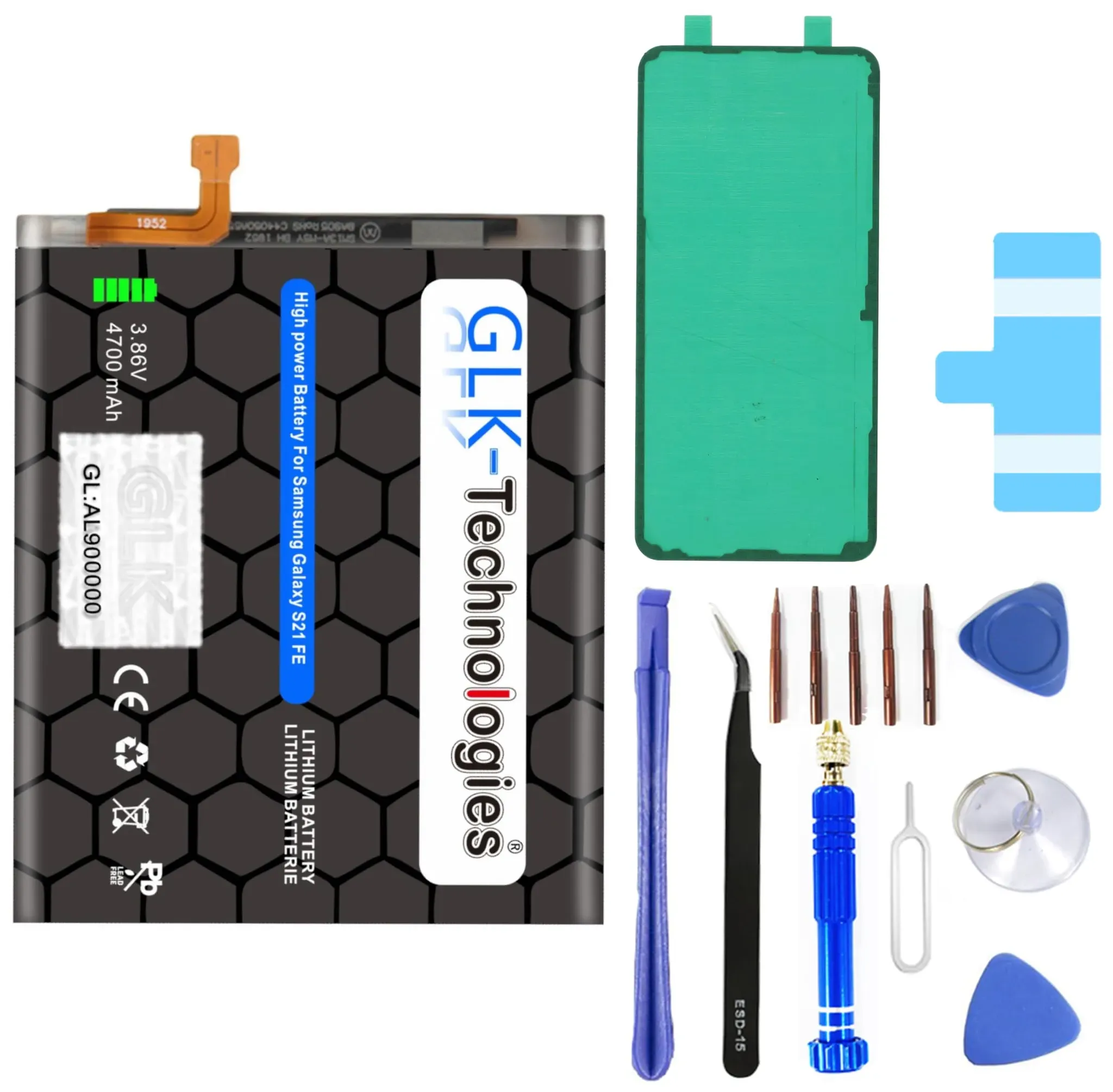 Verfügbarkeit: Auf Lager - Kategorie: Handy Akkus - GLK-Technologies - GTIN:0743194379568 -  Set bestehend aus: 1 x Klebestreifen für Akku 1 x Rückseite Cover Klebe Sticker 1 x Kreuz Schraubendreher 1 x Tri-Point Y Schraubendreher 1 x 5 Stern Torx Schraubendreher (Pentalobe) 1 x Torx Schraubendreher T5 1 x Torx Schraubendreher T6 1 x Gebogene Pinzette 1 x öffnungswerkzeuge (Hebel/Schaber) 1 x Plektron 1 x Saugnapf  BLITZVERSAND ! In der Regel 1-3 Werktage für die Zustellung.  Dieser Artikel passt für folgende Modelle: Samsung Galaxy S21 FE 5G SM-G990  Ersetzt folgende Akkutypen: EB-BG990ABY 💎 Hochwertige Rohstoff aus Südkorea š¡š¡ Passendes 33W 2-Port Schnellladegerät inkl. USB-C Kabel 👉 B0C7BYZTWW - 27,99 Euro bei Amazon Marketplace CE - gefunden von billiger.de Ein 100% Original Samsung Akku, der die höchste Zuverlässigkeit und Kompatibilität bietet. ![]() ![]() 100% Original - Samsung Galaxy eBay S21 FE G990B Akku Batterie Battery accu EB-BG990ABY