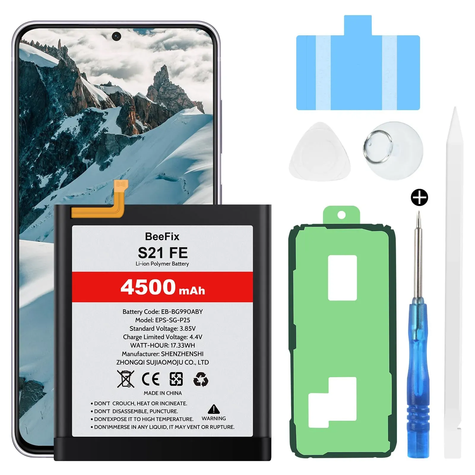 Auf Lager Versand durch Amazonhvoolee Akku für Samsung Galaxy S21 FE 5G : EB-BG990ABY 4500mAh Ersatz akku für Galaxy S21 FE SM-G990B/DS Batterie mit professionellem Reparaturwerkzeug