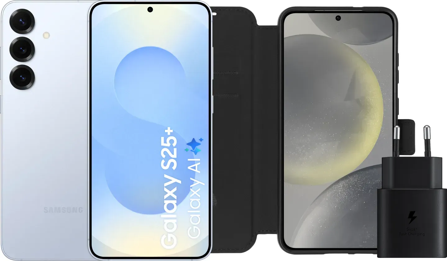 Kategorie: Handys ohne Vertrag - Samsung - GTIN:6151119757737 - Lade dein Samsung Galaxy S25 Plus 256 GB Hellblau 5G mit dem mitgelieferten Samsung Ladegerät 25 Watt Schwarz blitzschnell auf. Innerhalb einer halben Stunde ist der Akku wieder zu etwa 70 Prozent aufgeladen. Das Samsung S25 Plus ist ein erstklassiges Smartphone mit gestochen scharfem Display. Auf dem 6,7 Zoll großen Quad-HD-Display siehst du dir Serien und Videos in der höchsten Qualität an. Mithilfe des integrierten Galaxy AI Assistenten bearbeitest du Fotos oder Texte. Das Samsung S25 Plus ist mit einem großen 4.900-mAh-Akku ausgestattet, der bei durchschnittlicher Nutzung einen ganzen Tag lang hält. Mit dem Samsung S25 Plus führst du außerdem die anspruchsvollsten Aufgaben aus. Das S25 Plus verfügt über drei Kameras, mit denen du gestochen scharfe Fotos aufnimmst. Dank des Teleobjektivs zoomst du sogar bis zu dreimal ohne Qualitätsverlust heran. Der große 256-GB-Speicher bietet genug Platz für deine Fotos, Apps und andere Dateien. Lädst du gerne viele Apps und Serien herunter? Dann ist die 512-GB-Variante des S25 Plus eine bessere Wahl. - 1039,00 Euro bei coolblue - gefunden von billiger.de Dieses Angebot von coolblue bietet das Samsung Galaxy S25 Plus 256GB in Hellblau mit einem praktischen Zubehörset. ![]() ![]() Samsung Galaxy S25 Plus 256GB Hellblau 5G + Zubehörset