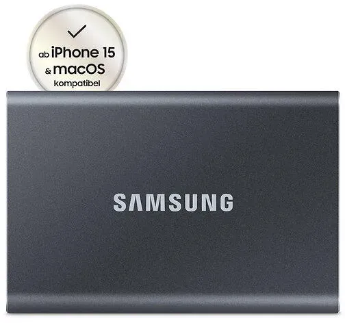 Kategorie: SSD Festplatten - Samsung - GTIN:8806090312403 - Superschnelle Datenübertragung Mit sequenziellen Lese-/Schreibgeschwindigkeiten von bis zu 1.050 MB/s kann die T7 große Datenmengen über USB 3.2 der 2. Generation in Sekunden übertragen. Ein echter Boost für deinen Workflow. Findet fast überall Anschluss Die T7 ist mit USB Typ-C zu C und USB Typ-C zu A Kabeln ausgestattet, um eine Störung des Workflows zu verhindern. User können problemlos zwischen Windows , macOS , Smartphones, iPhone 15, Tablets oder Spielekonsolen switchen. Außerdem sehr praktisch: Im Lieferumfang sind zwei USB-Kabel enthalten (Typ-C-auf-C sowie Typ-C-auf-A). Videos aufnehmen und direkt speichern Erweitere die Möglichkeiten für deine Smartphone- Videoaufnahmen mit der energieeffizienten T7. Erfasse und speichere 4K-Aufnahmen gleichzeitig. Dank der unkomplizierten Verbindung von der T7 mit deinem Laptop oder PC kannst du sofort mit der Bearbeitung beginnen. Automatisch geschützt gegen überhitzung Probleme durch zu hohe Arbeitstemperaturen hast du damit kaum. Die T7 setzt beim Temperaturmanagement ganz auf Dynamic-Thermal-Guard-Technologie. Dies sorgt dafür, dass die T7 nicht unangenehm heiß wird und auch bei hoher Beanspruchung ihre optimale Betriebstemperatur beibehält. Robuster Schutz gegen Datenverlust Die T7 ist ein sogenanntes Solid-State-Drive(SSD)-Laufwerk und hat im Inneren keine beweglichen Teile. Dank ihres robusten Metallgehäuses können deine Daten einen Sturz aus bis zu zwei Metern ... Computeruniverse.net bietet die graue Samsung Portable SSD T7 für 142.99 Euro an, eine gute Option für Nutzer, die eine neutrale Farbe bevorzugen. ![]() Samsung Portable SSD T7 2 TB USB 3.2 Gen2 Typ-C Titan Gray PC/Mac MU-PC2T0T/WW
