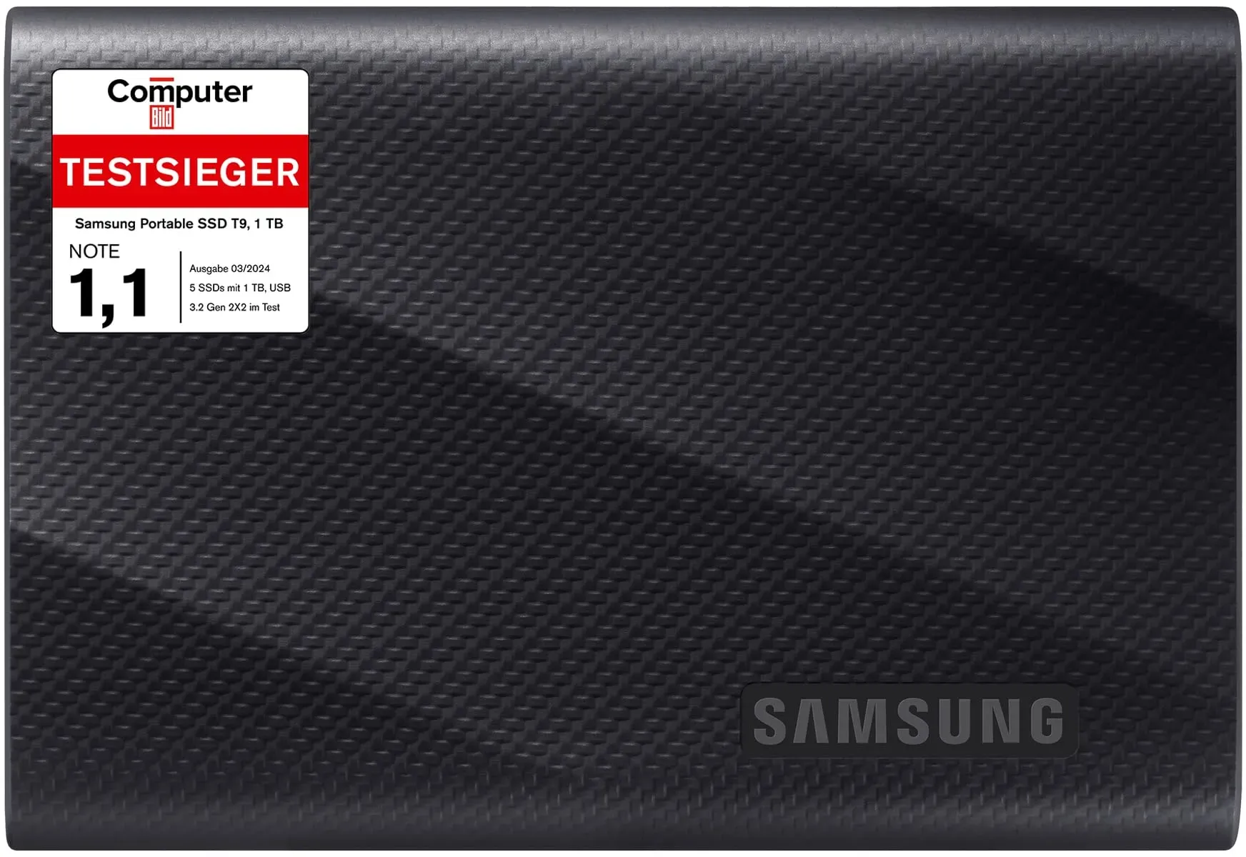 Kategorie: SSD Festplatten - Samsung - GTIN:8806094914696 - Externe Solid-State-Drive mit 1 TB Kapazität / USB 3.2 Gen 2x2 (20 Gb/s) Schnittstelle / Bis zu 2.000 MB/s Lesegeschwindigkeit / Robustes Gehäuse, sturzsicher bis zu 3 Meter / Passwortschutz mit Hardwareverschlüsselung / Kompatibel mit Macs, PCs, Konsolen u. v. m. - 124,90 Euro bei notebooksbilliger - gefunden von billiger.de Computeruniverse.net bietet die 1 TB Version für 124.90 Euro an, was ein sehr guter Preis für die gebotene Leistung ist. ![]() Samsung Portable SSD T9 1 TB USB 3.2 Gen2x2 Typ-C Schwarz bis 2.000 MB/s PC/Mac MU-PG1T0B/EU