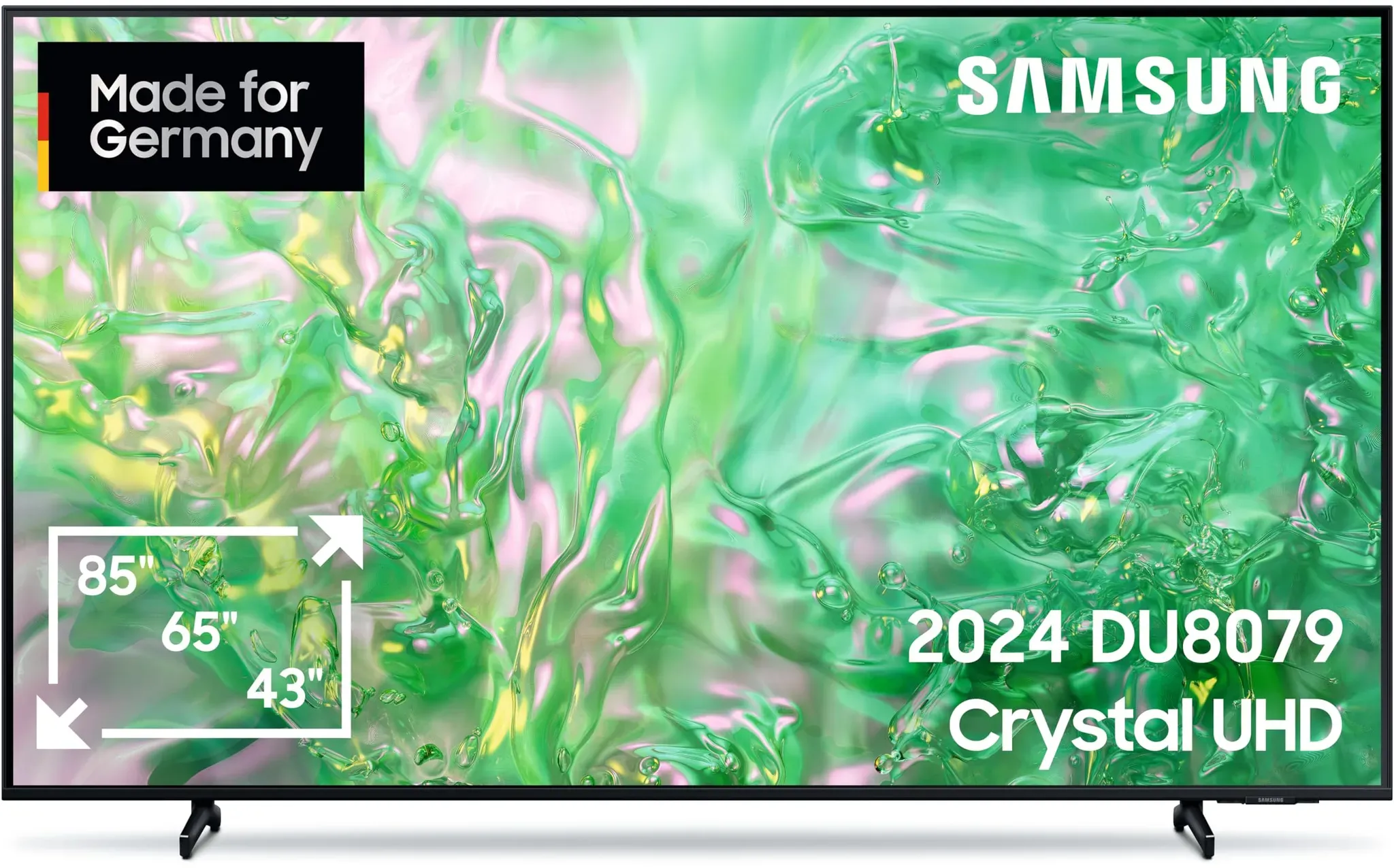 EEK: G - Kategorie: Fernseher - Samsung - GTIN:8806095285757 - UHD 4K: mehr Details und mehr Farben Crystal 4K-Prozessor: optimiert Ihre Inhalte in 4K - 462,47 Euro bei Amazon Marketplace CE - gefunden von billiger.de Ein 2024er Crystal UHD Modell mit Dynamic Crystal Color und AirSlim Design, das eine gute Bildqualität und modernes Aussehen vereint. ![]() ![]() Samsung Crystal UHD 4K DU8079 Fernseher 55 Zoll, Samsung TV mit Dynamic Crystal Color, 4K Upscaling, AirSlim Design, Smart TV, GU55DU8079UXZG, Deutsches Modell [2024]