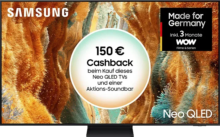 Zustand: Neu - Fernseher - SAMSUNG Samsung - GQ55Q8FAAU - - Kostenloser Streaming-Content: Dank Made for Germany kannst Du deine Lieblingsserien, Blockbuster oder Sport-Highlights in bestechender Bildqualität genießen - ganz gleich, ob via Stream oder Satellit. Einfach Aktions-TV oder Aktions-Soundbar mit deutschem Modell-Code kaufen und kostenlosen Streaming-Content dazu erhalten. Samsung AI TV mit 100 % Farbvolumen für satte Farben in verschiedenen Helligkeitsbereichen dank Quantum-Dot-Technologie Quantum HDR+ für sehr hohen Kontrastumfang und filmreife Bilder auf deinem TV-Gerät Neural Quantum 4K AI Gen2 Prozessor für eine KI-gestützte Verbesserung von Bild, Ton und Funktion sowie gestochen scharfes 4K AI Upscaling Pro Hauchdünne Rahmen treffen auf ultraschlankes Profil dank AirSlim Design, Werke weltberühmter Galerien direkt in dein Wohnzimmer dank Art Store Lieferumfang: 1 x Samsung KI Fernseher QLED Q8F 4K, 55 Zoll (138 cm), Smart TV inkl. Fernbedienung Premium Solar Smart Remote, GQ55Q8FAAUXZG - bei Amazon.de Ein Neo QLED Mini LED TV, der mit seiner fortschrittlichen Hintergrundbeleuchtungstechnologie für präzise Kontraste und Helligkeit sorgt. ![]() ![]() SAMSUNG GQ55QN70F Mini LED / Neo QLED 4K TV (55 Zoll 138 cm, UHD 4K, SMART TV)