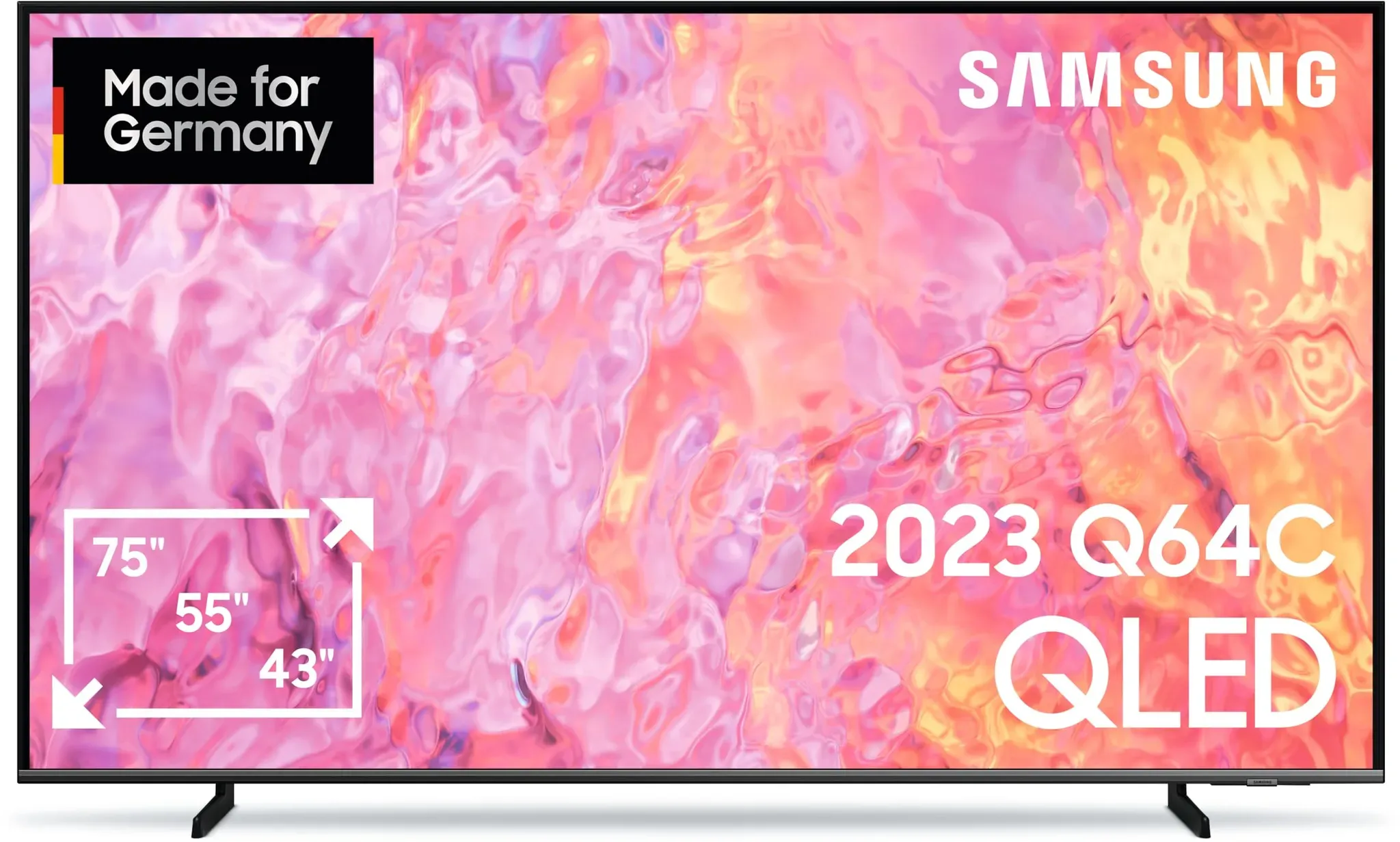 Multimedia TV & Video Fernseher & tragbare Fernseher Fernseher - EAN:8806097233725 - - gefunden von Kelkoo Ein QLED-Fernseher aus dem Jahr 2023, der mit Quantum-Dot-Technologie und Quantum HDR für verbesserte Farben und Kontraste sorgt. ![]() ![]() Samsung QLED 4K Q64C Fernseher 55 Zoll, UHD, Samsung TV mit Quantum-Dot-Technologie, Quantum HDR, AirSlim Design, Smart TV, GQ55Q64CAUXZG, Deutsches Modell [2023]