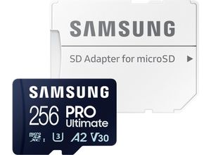 lieferbar-am nächsten Werktag bei dirSamsung Pro Ultimate Speicherkarte (256 GB, Video Speed Class 30 (V30)/UHS Speed Class 3 (U3), 200 MB/s Lesegeschwindigkeit) blau