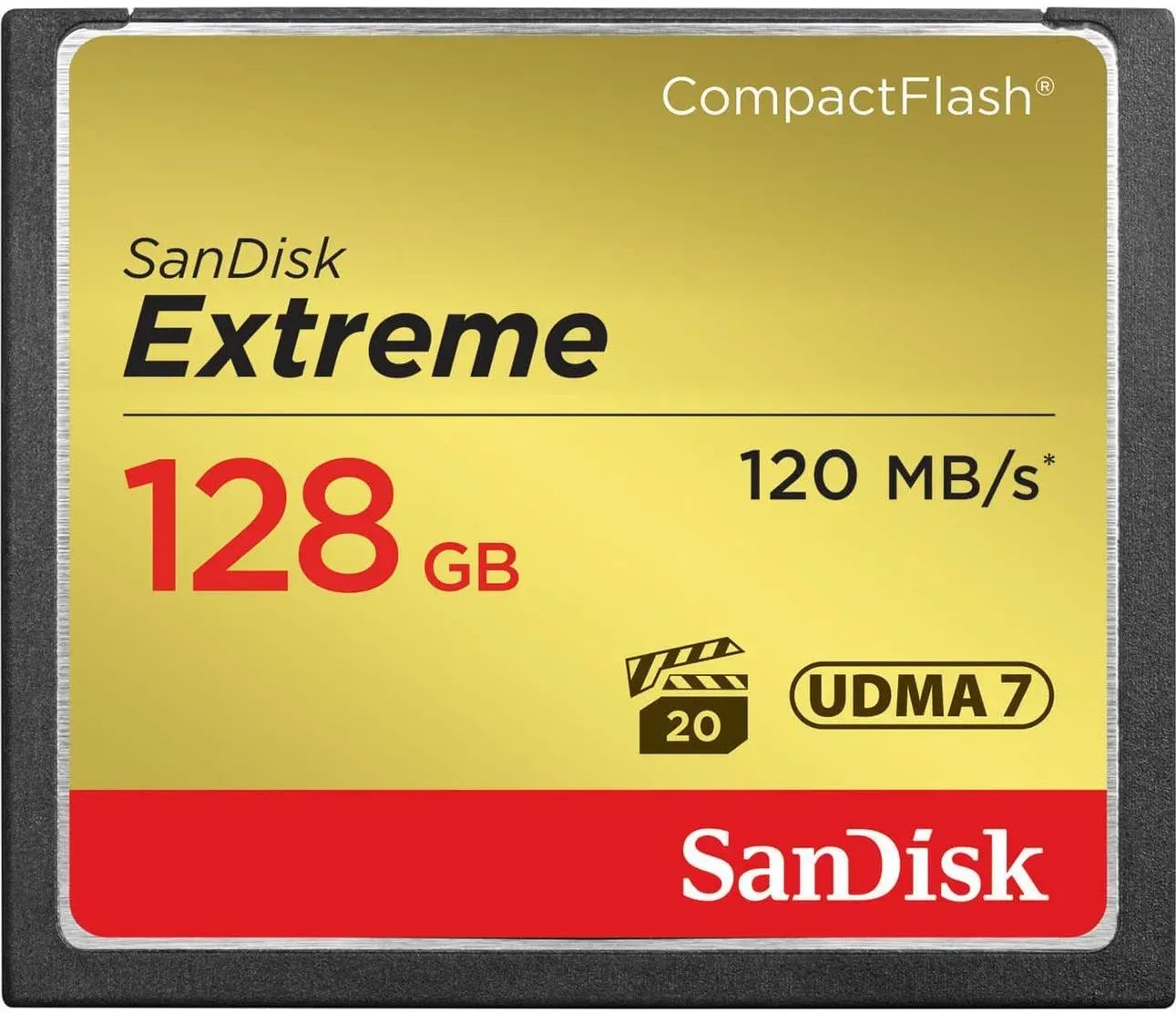 Kategorie: Compact Flash - SanDisk - GTIN:0619659102500 - Speichertyp: CompactFlash (UDMA-7) Speicherkapazität: 128 GB Geschwindigkeitsklasse: UDMA max. Lese-/Schreibgeschwindigkeit: 160 MB/s / 150 MB/s Hersteller 3 - 104,90 Euro bei Cyberport - gefunden von billiger.de Diese CFast 2.0 Karte ist ideal für professionelle Videokameras, die extrem hohe Schreibgeschwindigkeiten für RAW-Videoaufnahmen erfordern. ![]() ![]() SANDISK CFast Card Extreme Pro 128GB (128 GB, CFast 2.0), Speicherkarte, Silber, Schwarz