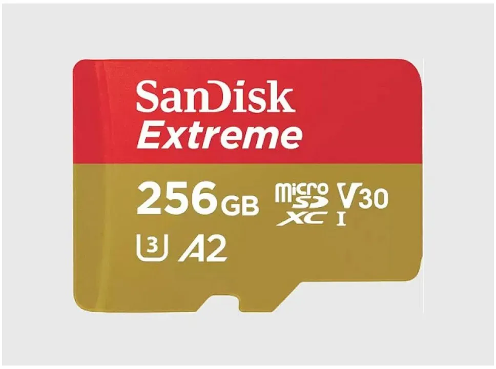Auf Lager, 1 Werktag in_stockSanDisk Extreme UHS-I V30 (256 GB, microSDXC, U3, UHS-I), Speicherkarte, Rot, Gold