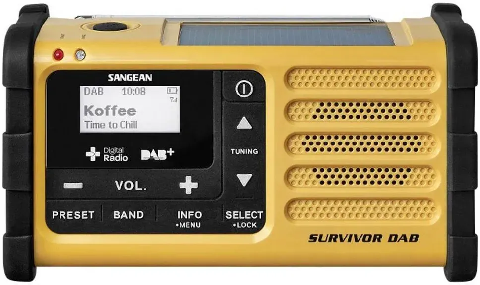 Zustand: Gebraucht - DAB-Funkgeräte Tragbare DAB-Funkgeräte - Sangean - A500343 FBA_MMR-88 - EAN: 4711317993584 - IMMER AUFGELADEN - Das Sangean MMR-88 Notfall-Radio bietet zahlreiche Wege, um den Akku aufzuladen: Mit dem handbetriebenen Dynamo-Generator, über Solarenergie, oder den Micro-USB-Anschluss - für maximale Flexibilität bei Outdoor oder Camping Aktivitäten. KRISENSICHER UND VIELSEITIG: Das Notfall-Radio bietet sehr guten FM-Empfang, sodass Sie in Notfällen immer aktuelle Informationen erhalten. Der Kopfhörer-Ausgang sorgt für zusätzlichen Komfort und ermöglicht es Ihnen, Ihre Musik ungestört zu genießen. IM NOTFALL BEREIT: Ausgestattet mit einer Taschenlampe, die 4 verschiedene Modi bietet, darunter SOS-Signal für Notsituationen ist das Radio der Retter in der Not. Die integrierte Taschenlampe sorgt darüberhinuas für sehr gute Sichtverhältnisse bei Nacht und das akustische Notsignal rt zusätzliche Sicherheit, falls Sie Hilfe benötigen. ROBUST UND WIEDERSTANDSFÄHIG: Mit stoßfesten Gummi-Ecken und einem strapazierfähigen Gehäuse ist dieses Notfall-Radio für jede Herausforderung gewappnet. Ideal für den Einsatz in extremen Bedingungen wie beim Camping oder Wandern. Das MMR-88 ist ein zuverlässiger und langlebiger Begleiter. KOMFORTABEL UND FUNKTIONAL: Das sehr kompakte und tragbare Notfall-Radio ist mit einem beleuchteten LCD-Display und einer LED-Batterieanzeige ausgestattet, damit Sie immer den Überblick behalten. - 1 Händler im amazon.de Marketplace Eine preiswerte Option des beliebten MMR-88 Survivor Modells, das Robustheit und grundlegende Notfallfunktionen vereint. ![]() ![]() Sangean MMR-88 (Survivor M8) gelb Notfall/Kurbel/Solar Radio - Schwarz/Gelb