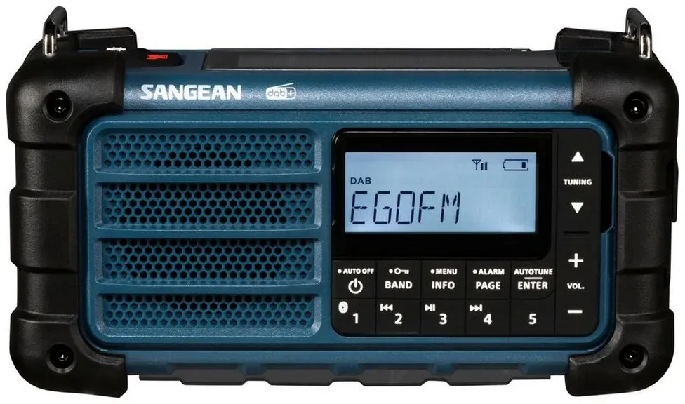 Kategorie: Radios - Sangean - GTIN:4711317996721 - IMMER AUFGELADEN - Das Sangean MMR-99 DAB bietet zahlreiche Wege, um den Akku aufzuladen: Mit dem handbetriebenen Dynamo-Generator, über Solarenergie, USB-Anschluss oder klassische Netzstromversorgung für maximale Flexibilität bei Outdoor oder Camping Aktivitäten. KRISENSICHER UND VIELSEITIG: Das Notfall-Radio bietet sehr guten DAB+ und FM-Empfang, sodass Sie in Notfällen immer aktuelle Informationen erhalten. Neben dem klasischen AUX-Eingang können Sie außerdem mit der Bluetooth-Funktion Ihre Lieblingsmusik streamen. IM NOTFALL BEREIT: Ausgestattet mit einer Taschenlampe, die 5 verschiedene Modi bietet, darunter SOS- und Morsecode-Signal für Notsituationen ist das Radio der Retter in der Not. Die Rotlicht-Taschenlampe sorgt für perfekte Nachtsicht und das akustische Notsignal rt zusätzliche Sicherheit, falls Sie Hilfe benötigen. ROBUST UND WIEDERSTANDSFäHIG: Mit stoßfesten Ecken und einem strapazierfähigen Gehäuse, das Stöße, Staub und Spritzwasser (IP55) standhält, ist dieses Notfall-Radio für jede Herausforderung gewappnet. Ideal für den Einsatz in extremen Bedingungen wie beim Camping oder Wandern. Das MMR-99 DAB ist ein zuverlässiger und langlebiger Begleiter. KOMFORTABEL UND FUNKTIONAL: Das kompakte und tragbare Notfall-Radio ist mit einem beleuchteten LCD-Display und einer Batterieanzeige ausgestattet, damit Sie immer den überblick behalten. Der integrierte Alarmtimer mit 3 Weckmodi und 4 Haufigkeitsoptionen bietet ... Dieses Angebot von cyberport.de bietet das Ocean Blue Modell zu einem guten Preis. ![]() Sangean MMR-99 DAB+ Portables Notfall-Radio Ozeanblau A500480