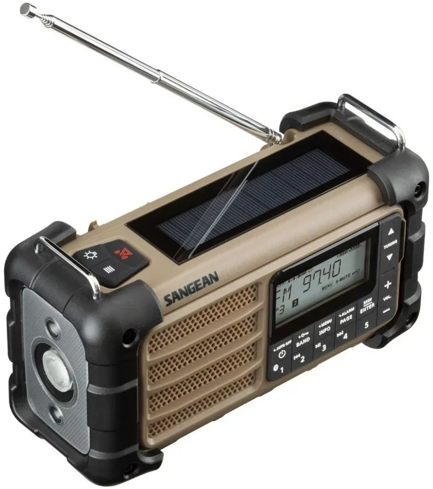 10 Händlerangebote bei billiger.de - Kategorie: Radios - Sangean - Built-in Bluetooth Wireless Audio Streaming Powered by Hand Crank/Solar Power/USB-C /18650 Lithium Battery(2600mAh) Built-In 1.5W Premium 2 1/4 Inches Speaker FM Mono/Stereo Switch Built-In Clock (Real Time/Alarm/Snooze) IP55 Dust & Waterproof Adjustable 5-Mode LED Flashlight Red Light Flashlight for Optimum Night Vision - GTIN:4711317996639 Dieses braune Modell bietet UKW-Empfang, Bluetooth und Solarpanel zu einem attraktiven Preis. ![]() ![]() Sangean MMR-99 Outdoorradio UKW Notfallradio, Bluetooth Solarpanel, spritzwassergeschützt, staubdicht, Taschenlampe Braun