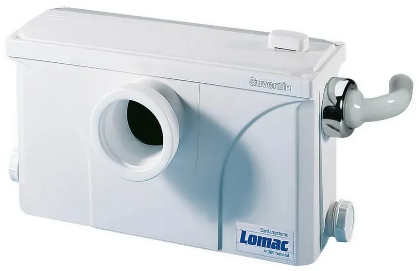 4 Händlerangebote bei billiger.de - Kategorie: Sanitärinstallation - sfa sanibroy - vertriebsgesellschaft - LOMAC SOUVERAIN 3000-A, Fäkalienhebeanlage mit Kleinrohrsystem Leistungsstarke Förderpumpe mit Anschluss für Dusche, Bidet, Waschbecken und WC, fördert Abwässer durch ein DN 25mm Rohr hoch und über weite Strecken bis zum Kanal oder Sammelabfluss. Extrem wartungsarm, Pumpe und Schneidwerk sind selbst - GTIN:3308815012223 ![]() ![]()