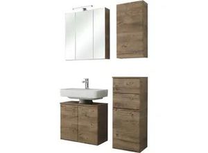 lieferbar-in 6-8 Werktagen bei dirSaphir Badmöbel-Set Quickset 100, Waschbeckenunterschrank mit Spiegelschrank, (5-St), Badezimmer-Set mit Unterschrank, Hängeschrank und Hochschrank in Weiß weiß