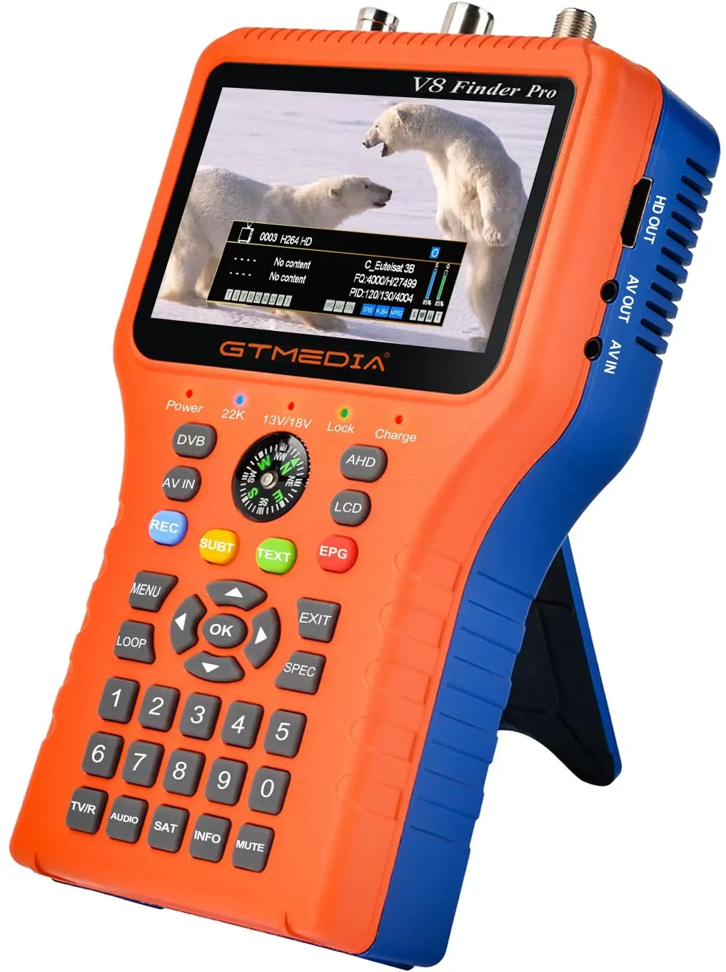 Auf Lager Versand durch AmazonGT Media Satellite Finder Pro SAT Finder Satellitenfinder Meter DVB-S2X/S2/S/T2/T/C Satellitensuchgerät Signalempfänger Decoder Digitale Satellitenerkennung Messgerät FTA 4.3" LCD