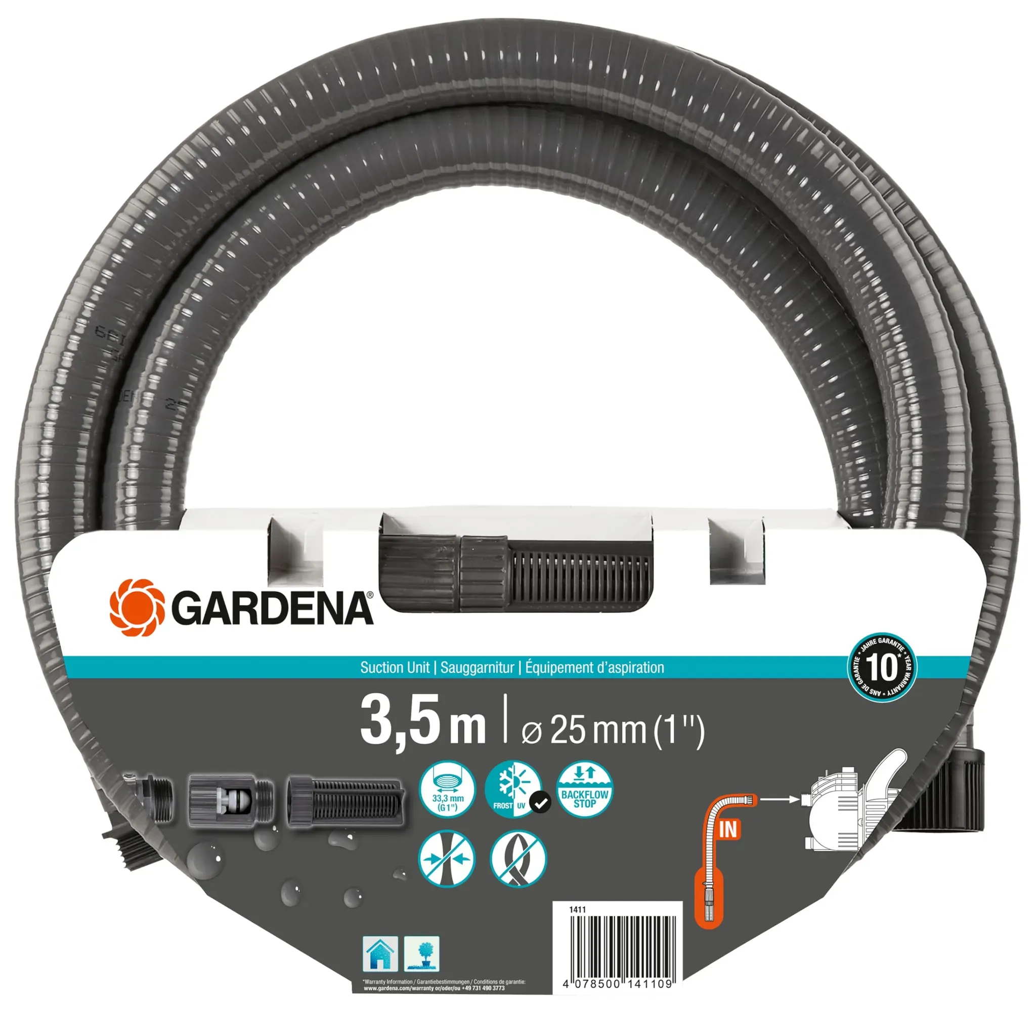 Garten- und Grünflächenpflege Blumen, Pflanzen & Bäume - EAN:4066407021648 - GARDENA Saugschlauch mit Sauggarnitur 4,0 m - zuverlässige Wasserzufuhr für Ihren GartenOptimieren Sie Ihre Bewässerung mit dem GARDENA Saugschlauch, ausgestattet mit hochwertiger Sauggarnitur für eine effiziente und robuste Wasserentnahme.Robuste und langlebige VerbindungDer Saugschlauch ist mit einem Metall-Innengewinde von 33,3 mm (G1') ausgestattet, das für eine widerstandsfähige Verbindung sorgt und allen Wetterbedingungen standhält.Zuverlässige Funktion unter WasserDer Metallfilter mit einem Gewicht von 245 g gewährleistet, dass der Schlauch zuverlässig unter Wasser bleibt und keine Luft ansaugt. Der federbelastete Rückflussstopp sorgt zudem für ein sicheres Schließen bei geringer Saugtiefe, was eine schnelle Wasserverfügbarkeit rt.Leicht zu pflegenDas Filtergewebe aus Edelstahl ist leicht zu reinigen. Eine Anschlussöse ermöglicht die Befestigung von Schwimmkörpern oder zusätzlichen Gewichten.Im Lieferumfang enthalten sind ein GARDENA Saugfilter mit Rückflussstopp, ein 4,0 m langer Saugschlauch mit 25 mm (1') Durchmesser sowie eine Überwurfmutter von 33,3 mm (G1').Entscheiden Sie sich für den GARDENA Saugschlauch mit Sauggarnitur, um Ihre Wasserzufuhr effektiv zu gestalten. Kaufen Sie jetzt und profitieren Sie von einer zuverlässigen Gartenbewässerung! - gefunden von Kelkoo Die Gardena Sauggarnitur mit 4 m Saugschlauch ist eine bewährte Markenqualität für den Garten. ![]() ![]() Gardena Sauggarnitur mit 4 m Saugschlauch