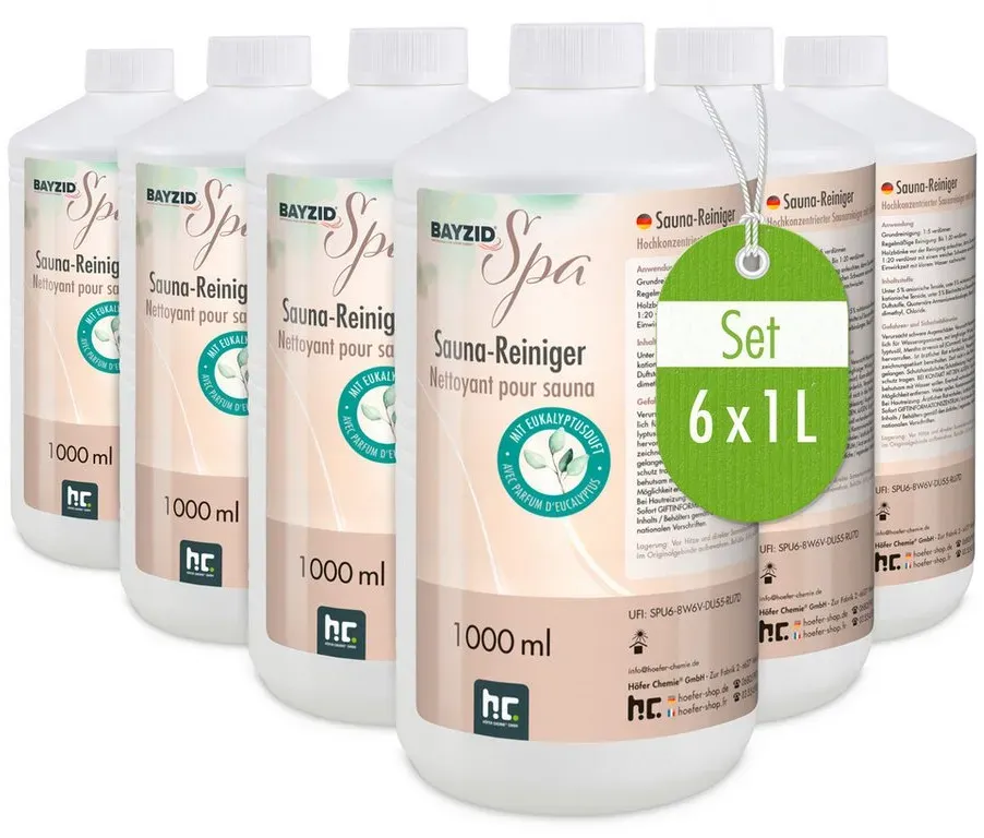 ![]() ![]() bayzid spa Höfer Chemie GmbH 6x 1 L Saunareiniger mit Eukalyptusduft - Hochkonzentrat Grundreiniger