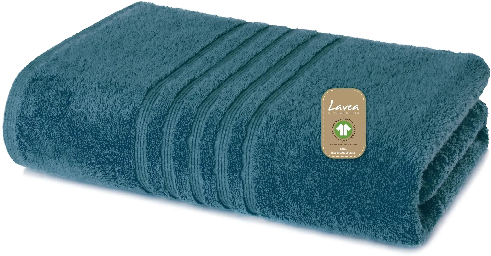 Kategorie: Handtücher - LAVEA - GTIN:4260468084288 - GOTS Standard. Hergestellt aus BIO- Baumwolle kommen alle unsere Produkte aus kontrolliert biologischem Anbau. Moderne Farben und zeitloses Design. Unsere Badvorleger lassen sich in jedes Farbkonzept integrieren und sorgen für ansprechende Farb-Akzente. Unsere Duschvorleger sind auch nach vielen Wäschen farbecht, formstabil und saugstark. Gewebt aus ca. 500 gr/m2 feinster BIO-Baumwolle erfüllen unsere Badematten höchste Ansprüche an Qualität und Komfort. - 31,95 Euro bei Amazon Marketplace Home - gefunden von billiger.de Das Lavea Saunatuch XXL in Navyblau bietet ebenfalls die Vorteile von GOTS-zertifizierter Bio-Baumwolle in einer klassischen Farbe. ![]() ![]() Lavea Saunatuch XXL, Navyblau, 80 x 220 cm Premium Frotteeserie Bali | GOTS Zertifiziert, 100% Bio Baumwolle