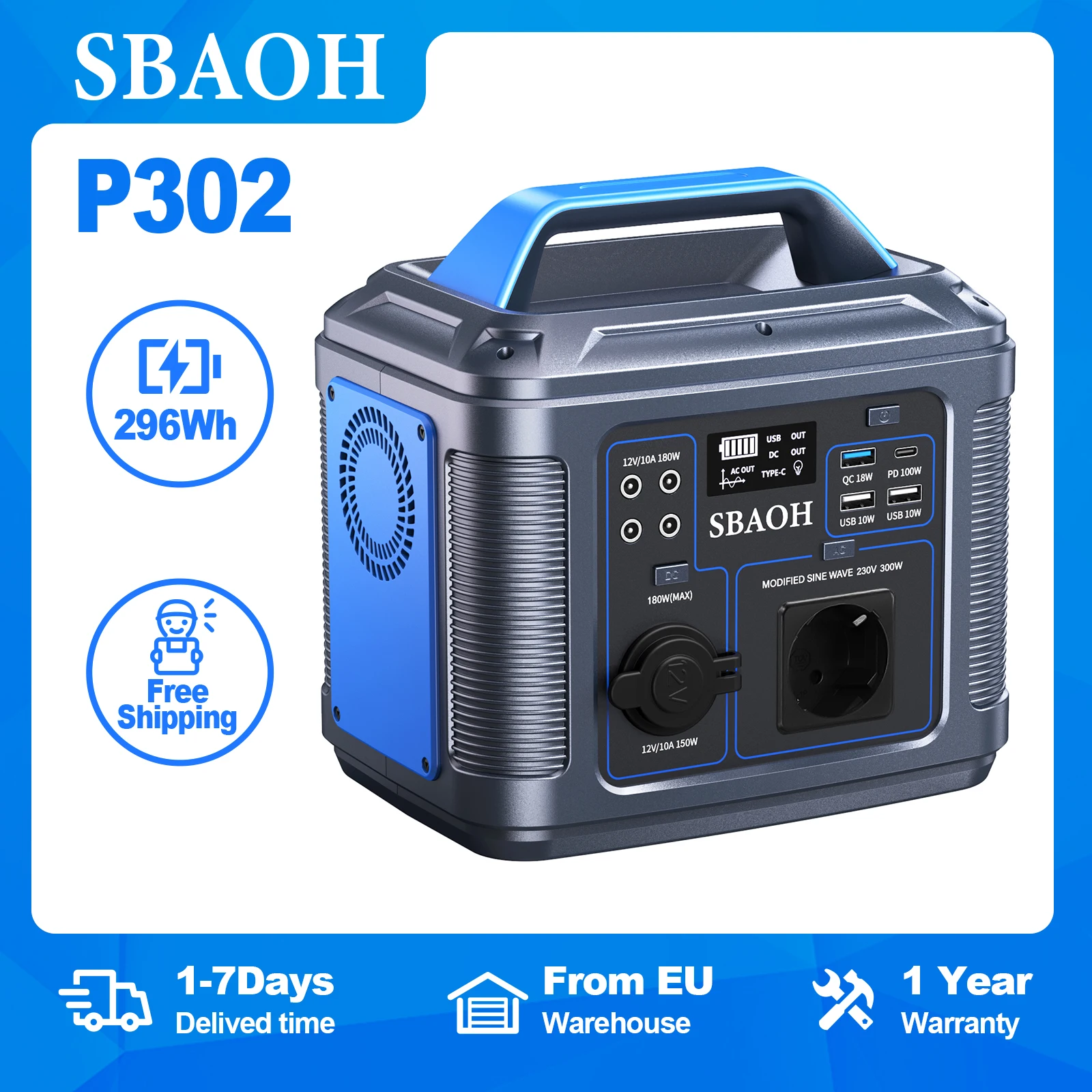 Der angezeigte Preis könnte seit dem letzten Update gestiegen sein - SBAOH Tragbares Kraftwerk, 296 Wh, 300 W, AC-Steckdose, DC-Anschlüsse, LED-Taschenlampe, Solargenerator, Powerbank, Reisen, Camping, Wohnmobil - Zustand: NEW - bei Aliexpress DE - gefunden von Buycentral ![]() ![]() SBAOH Tragbare - Powerstation, 300 eBay W, 296 Wh Generator, Schnellladung 3 PIN UK
