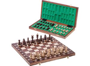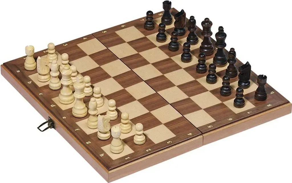 Kategorie: Schach - GoKi - GTIN:4013594569224 - Schachspiel in HolzklappkassetteSchachspiel in Holzklappkassette: Strategischer Spielspaß für die ganze FamilieTauchen Sie ein in die faszinierende Welt des Schachspielsund erleben Sie strategischen Spielspaß für die ganze Familie mit unserem Schachspiel in einer eleganten Holzklappkassette! Dieses Spielzeug aus hochwertigem Holz überzeugt nicht nur mit seinem zeitlosen Design und seiner hohen Qualität, sondern bietet auch stundenlangen Spielspaß und geistige Herausforderung für Jung und Alt.Klassisches Spiel, stilvolle Aufbewahrung:Detaillierte Beschreibung:Hochwertige Holzklappkassette: Das Schachspiel in Holzklappkassette ist nicht nur ein Spiel, sondern auch ein stilvolles Möbelstück, das Ihre Wohnung oder Ihr Haus aufwertet. Die Kassette ist aus massivem Holz gefertigt und überzeugt mit ihrer hochwertigen Verarbeitung und ihrem eleganten Design.Praktische Aufbewahrung:Wenn Sie nicht spielen, können Sie das Schachbrett und die Schachfiguren einfach in der Kassette verstauen. So ist alles ordentlich aufgeräumt und griffbereit, wenn Sie wieder eine Partie Schach spielen möchten.Komplettes Schachspiel: Unser Schachspiel enthält alle 32 Schachfiguren in den Farben Schwarz und Weiß sowie ein hochwertiges Schachbrett. So können Sie sofort loslegen und spannende Partien spielen.Angenehme Spielgröße: Das Schachbrett hat eine Größe von 38 x 38 cm, was eine komfortable Größe für ein anspruchsvolles Spiel bietet. Die Figuren sind ... Ein handgefertigtes magnetisches Schachspiel aus Echtholz von Falkenwerk, das Stabilität und Qualität vereint. ![]() ![]() Falkenwerk Magnetisches Schachspiel & Dame - Holz [38x38 cm] - Handgefertigtes Schachbrett aus Echtholz
