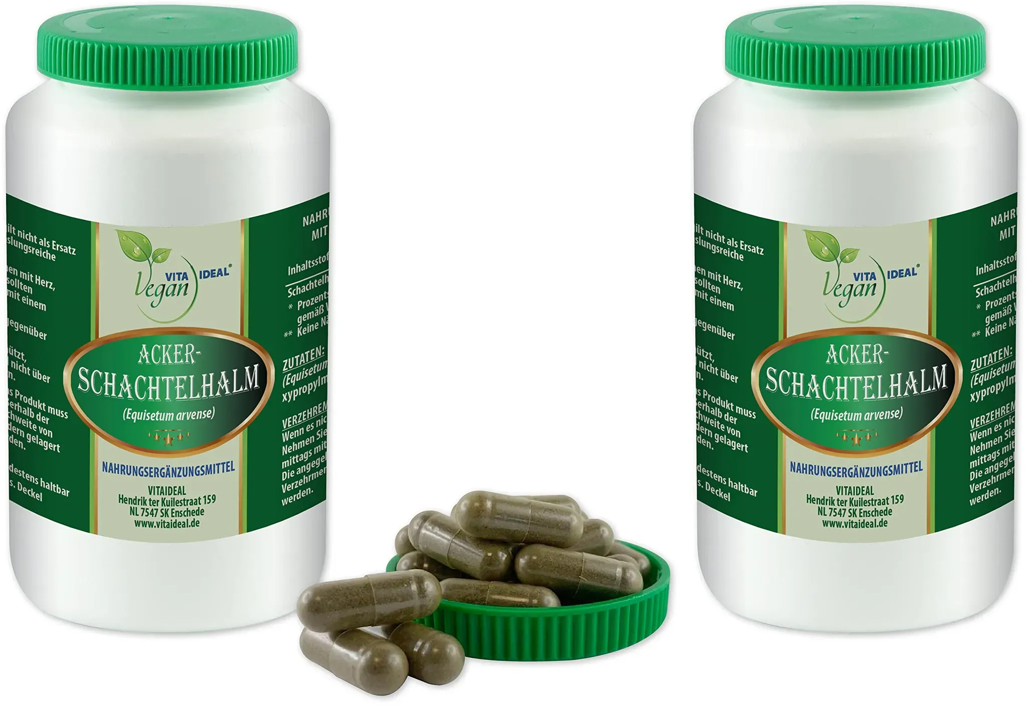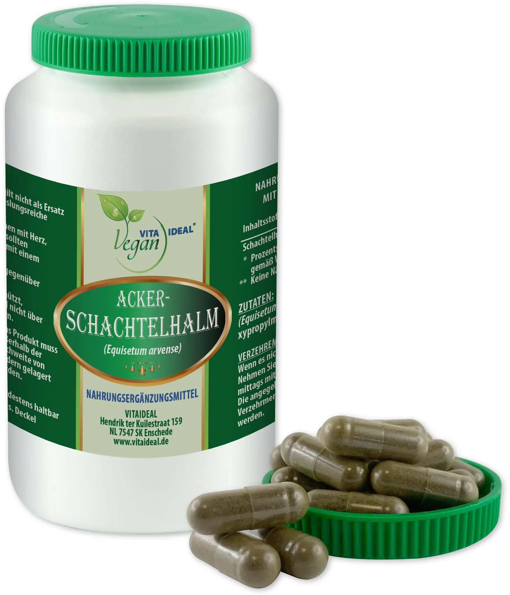 Zustand: Neu - 191,83 € / kg - Apfelessig-Kapseln - CDF Sports & Health Solutions - 1153-180 - - Unsere Ackerschachtelhalm Kapseln sind perfekt dosiert. Du erhältst bereits 500mg Ackerschachthalm Extrakt pro Tagesdosierung (1 Kapsel). Unser Ackerschachtelhalm Extrakt ist frei von Zusätzen. 100% VEGAN: Unsere Ackerschachtelhalm Kapseln enthalten nur die besten Zutaten ohne Gentechnik, sind 100% natürlich und für Veganer geeignet. OHNE FÜLLSTOFFE: Wir verzichten auf alle unnötigen Zusätze. Bei uns erhältst Du ausschließlich reinen Ackerschachtelhalm Extrakt in Kapselform. Wir nutzen nur hochwertige Rohstoffe, ohne Magnesiumstearat, ohne Mikrokristalline Cellulose und Ähnliches. LANGJÄHRIGE ERFAHRUNG: Unsere Ackerschachtelhalm Kapseln wurden von einem erfahrenen Team entwickelt. Seit 2014 bieten wir Dir natürliche Nahrungsergänzungsmittel mit höchster Qualität und entwickelt nach dem neuesten Stand der Studien. - Verkäufer: CDF Sports & Health Solutions im amazon.de Marketplace Dieses Produkt ist empfehlenswert, da es ein hochdosiertes Schachtelhalm Extrakt mit organischem Silizium in Braunglas bietet. ![]() ![]() Vitalplant Ackerschachtelhalm Extrakt 500mg im Braunglas - 120 Kapseln Hochdosiertes Schachtelhalm Extrakt (5:1) mit organischem Silizium - Vegan