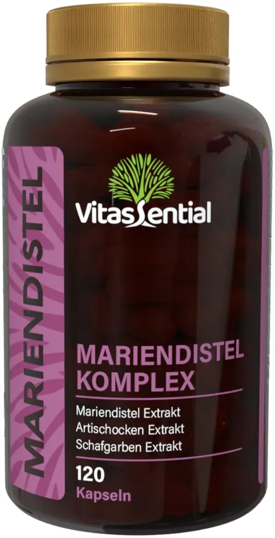 Verfügbarkeit: Auf Lager - Kategorie: Nahrungsergänzungsmittel - vitassential - GTIN:5940696463091 - Mariendistel Artischocke Kapseln hochdosiert liefern 80% Silymarin plus Artischockenextrakt und Bitterstoffe €“ als kraftvoller Leberkomplex für Leberreinigung, Verdauung und Bauchgefühl. Unser Leberkomplex setzt auf 80% Silymarin aus Mariendistelsamen und konzentrierten Artischockenextrakt €“ optimiert für Leberentgiftung, Leberreinigung sowie Verdauung, leichtes Bauchgefühl und Detox im Alltag unterstützt. Dein mariendistel leber komplex in praktischen leber komplex kapseln: Nur 1 Kapsel täglich liefert hochdosiertes Silymarin, Artischocke und Schafgarbe €“ gut verträgliche Leberkapseln für Leberkur, Verdauung. Perfekt für die Leberkur: Begleitet deine leber kur mit Bitterstoffen und Artischockenextrakt, unterstützt Leberreinigung und Leberentgiftung €“ ideal als täglicher Begleiter in Phasen von Detox. Leber entgiften leicht gemacht: Silymarin, Bitterstoffe und Artischockenextrakt unterstützen deine entgiftungskur und leberentgiftung €“ für spürbar mehr Leichtigkeit, weniger Völlegefühl und eine alltagstaugliche Routine. Premium Silymarin aus Mariendistelsamen (milk thistle): Standardisiert auf hohe Reinheit, kombiniert mit Artischocke und Schafgarbe €“ als moderner Leberkomplex für Leberfunktion, Verdauung. Detox kur entgiften und abnehmen: Unser stoffwechsel komplex kann den Stoffwechsel anregen, passt ideal zur leberkur zum abnehmen und ... Dieses hochdosierte Produkt mit 300 mg 10:1 Extrakt für 21,24 Euro ist ideal für Anwender, die eine stärkere Wirkung wünschen. ![]() ![]() Schafgarbe Kapseln - hochdosiert 300 mg 10:1 Extrakt (entspricht 3.000 mg Schafgarbe-Pulver) - vegan & bioaktiv - Produktion in Deutschland - ohne Zusatzstoffe - Achillea millefolium - Vitamineule®