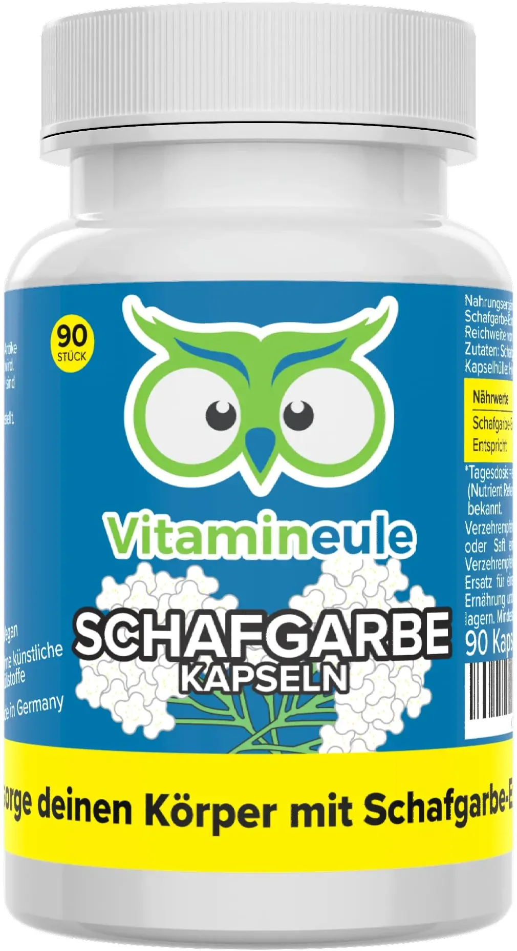 Verfügbarkeit: lieferbar-in 2-3 Werktagen bei dir - 742.57€/1kg - Kategorie: Nahrungsergänzungsmittel - Vitamineule - GTIN:4260558640219 - Produktinformationen Bezeichnung des Nahrungsergänzungsmittels , Schafgarbe Kapseln, Produktdetails Darreichungsform , Kapsel, Zutaten , Siehe Beschreibung, Zusatzstoffe , Frei von künstlichen Zusatzstoffen, Allergene , Frei von Allergenen, - 25,99 Euro bei OTTO - gefunden von billiger.de Dieses Produkt bietet eine große Packung mit 360 Kapseln reinem Schafgarbenkraut für 32,75 Euro, was es zu einer kostengünstigen Option für den Langzeitgebrauch macht. ![]() ![]() VITA IDEAL Vegan® Schafgarben - Kraut 360 Kapseln - Millefolii Hb, Schafgarbe - Tagesportion 650mg Schafgarbenkraut reines Pulver. Pflanzlich, natürlich und ohne Zusatzstoffe, original von VITAIDEAL.