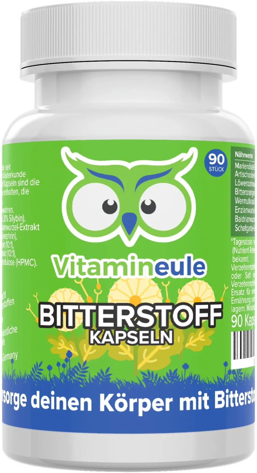 A bis Z Multivitamine Vitamine, Mineralien & Nahrungsergänzungsmittel BAA Vitamine & Ergänzungen - EAN:0716563250904 - Silymarin Mariendistel 1400 mg, 100 Kapseln, Bronson Laboratories Hochwertige, fortschrittliche Formel mit standardisiertem Silymarin-Extrakt in einer leicht zu schluckenden Kapsel. Bietet 350 mg Waffenextrakt, standardisiert auf 80 % Silymarin. Schafgarbe (Silybum marianum) ist eine in Europa beheimatete Pflanze, die seit Jahrhunderten in traditionellen Gesundheitspraktiken verwendet wird. Seine Samen enthalten eine Verbindung namens Bioflavonoid Silymarin. Wirkstoffe pro Kapsel: Silybum Marianum (Silybum Marianum) Samenextrakt 350 mg (4:1 Extrakt, entspricht 1400 mg Pflanze). Art der Nutzung: Erwachsene: 1 Kapsel einmal täglich mit einem vollen Glas Wasser. Präsentation: 100 Kapseln - gefunden von Kelkoo Dieses Produkt bietet eine breite Palette an Bitterstoffen, inklusive Schafgarbe, für 19,54 Euro und ist ideal für die Verdauungsförderung. ![]() ![]() Bitterstoffe Kapseln - mit Mariendistel, Artischocke, Löwenzahnwurzel, Wermutkraut, Enzianwurzel, Baldrianwurzel, Schafgarbe - Produktion in Deutschland - ohne Alkohol - Vitamineule®