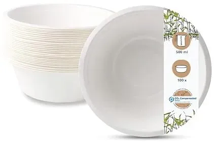 Auf Lager Versand durch AmazonFWEEK 150 Stück 500ml Suppenschalen Einweg, Zuckerrohr Bagasse Einwegschalen, Einwegschüsseln, Kompostierbar Suppenschalen für Party Hochzeit Picknick, Weiß