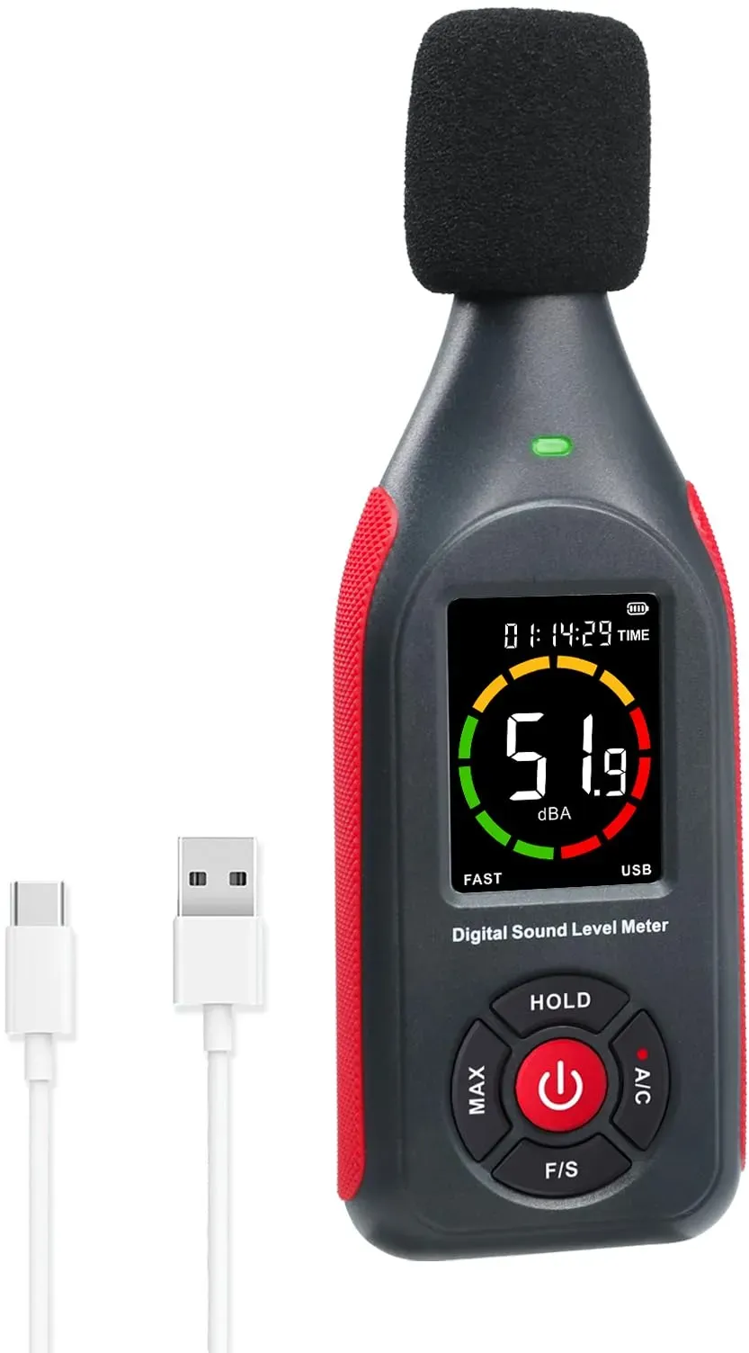 Zustand: Neu - Schallpegelmesser - Oniissy - Digital Sound Level Meter decibel detector - - [Professioneller Messbereich] Misst den Geräuschpegel von 0 bis 130 dB genau und ist somit ein unverzichtbares Werkzeug für Schallpegelbewertungen in verschiedenen Umgebungen. [Datenprotokollierungsfähigkeit] Der integrierte Speicher ermöglicht die Aufzeichnung und Speicherung von Tonmessdaten und ermöglicht eine detaillierte Analyse und Berichterstattung. Großes LCD-Display: Verfügt über einen klaren, großen LCD-Bildschirm, der echte Messwerte und Sichtbarkeit unter allen Bedingungen anzeigt. Vielfältige Anwendungsmöglichkeiten: Für Lärm am Arbeitsplatz, Konformitätsprüfungen, Prüfung von Audio-Geräten und Klangbewertungen, für eine Reihe von professionellen Bedürfnissen. Tragbares und leichtes Design: Kompakte Abmessungen (133 x 30 x 18 mm) für einfache Bedienung und Transport zwischen verschiedenen Messorten. - Verkäufer: BestHomeland-eu im amazon.de Marketplace Ein weiteres günstiges Einsteigermodell, das grundlegende Funktionen mit A/C-Gewichtung und Alarm bietet. ![]() ![]() AUNMAS 30?130 DB Schallpegelmesser, Hochpräzise Datenlogger-Messung, Tragbarer Schalldruckpegel mit A/C-gewichtet, Geräuschtester, Mini-akustischer Alarm und IC-Temperaturmessung für Zuhause, Fabrik,