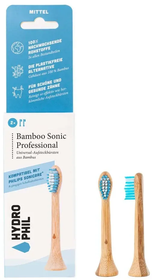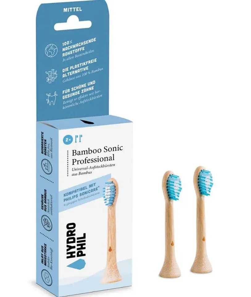 Zustand: Neu - 0,59 € / Stück - Ersatzzahnbürsten & -düsen Ersatzzahnbürsten & Ersatzdüsen - Hydrophil - 548976 - EAN: 4260397793466 - kompatibel mit gängigen Schallzahnbürsten & PHILIPS Sonicare 100% nachwachsende Rohstoffe klimaneutral erdölfrei 2 Stück pro Packung - Verkäufer: Weit & Breit Handelsgesellschaft mbH im amazon.de Marketplace ![]() ![]() Hydrophil Bamboo Sonic Professional Aufsteckbürsten mittel 10 St.