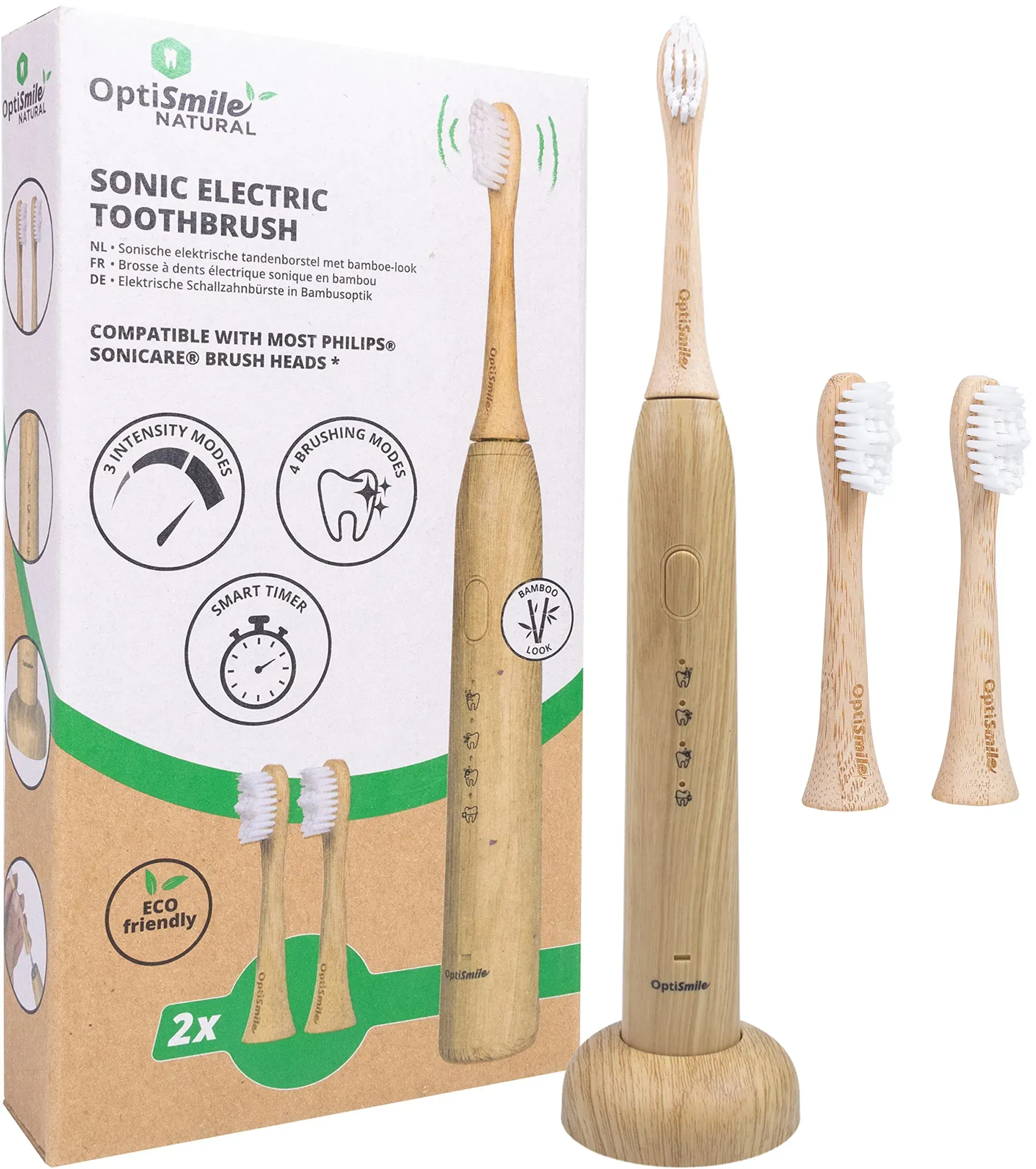 Zustand: Neu - 39,99 € / Stück - Schall Schallzahnbürsten - Optismile Karsten International - 3246 - EAN: 8711568069072 - 🪥 Wiederaufladbar: USB-C-Ladung für schnelles und einfaches Laden, immer einsatzbereit 🌿 Bambus-Optik: Nachhaltiges Design mit FSC-Bambusaufsätzen für einen umweltfreundlichen Look š¡ 4 Putzmodi: Wählen Sie zwischen Reinigen, Aufhellen, Polieren oder Zahnfleischpflege für optimale Mundhygiene 🕒 Intelligenter Timer: Erinnerte alle 30 Sekunden an den Quadrantenwechsel für gleichmäßige Reinigung 💎 3 Intensitätsstufen: Passen Sie die Leistung von sanft bis stark für Ihr perfektes Putzerlebnis an - Verkäufer: KarstenInternational im amazon.de Marketplace ![]() ![]() Optismile Elektrische Zahnbürste Bambus | Schallzahnbürste Bambus mit Wiederaufladbarer Leistung | Bamboo Ultraschall-Zahnbürste mit 5 Mod und 2 Bambusköpfe Umweltfreundlich und Nachhaltig