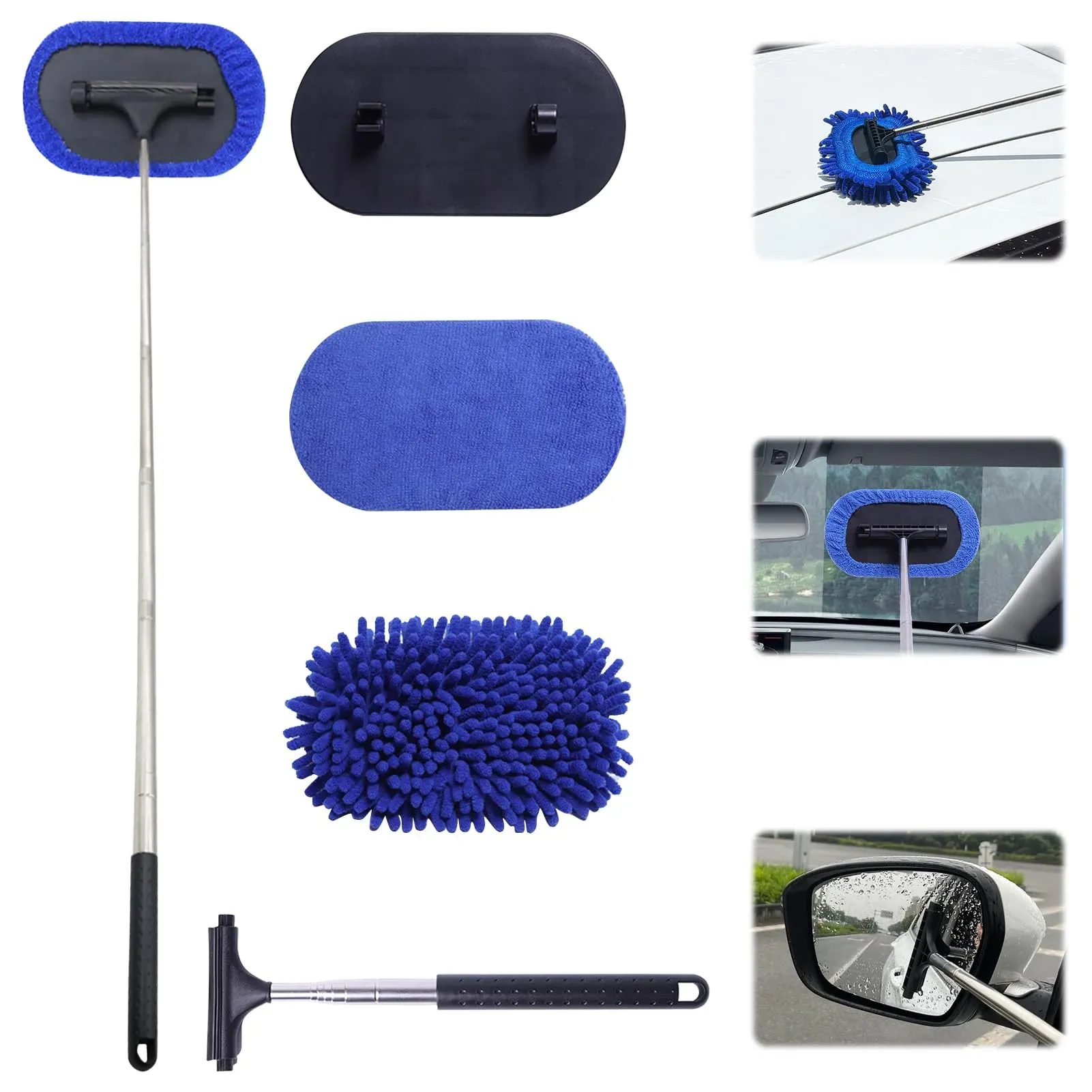 Auf Lager Versand durch AmazonNIUQIGE Fensterwischer 180°, Auto Scheibenreiniger mit 2 Mikrofaserpads, Rückspiegelwischer Kit mit ausziehbarem Griff, Autoscheiben Innenreiniger Reinigungswerkzeug für KFZ, Wohnmobil, LKW, Fenster