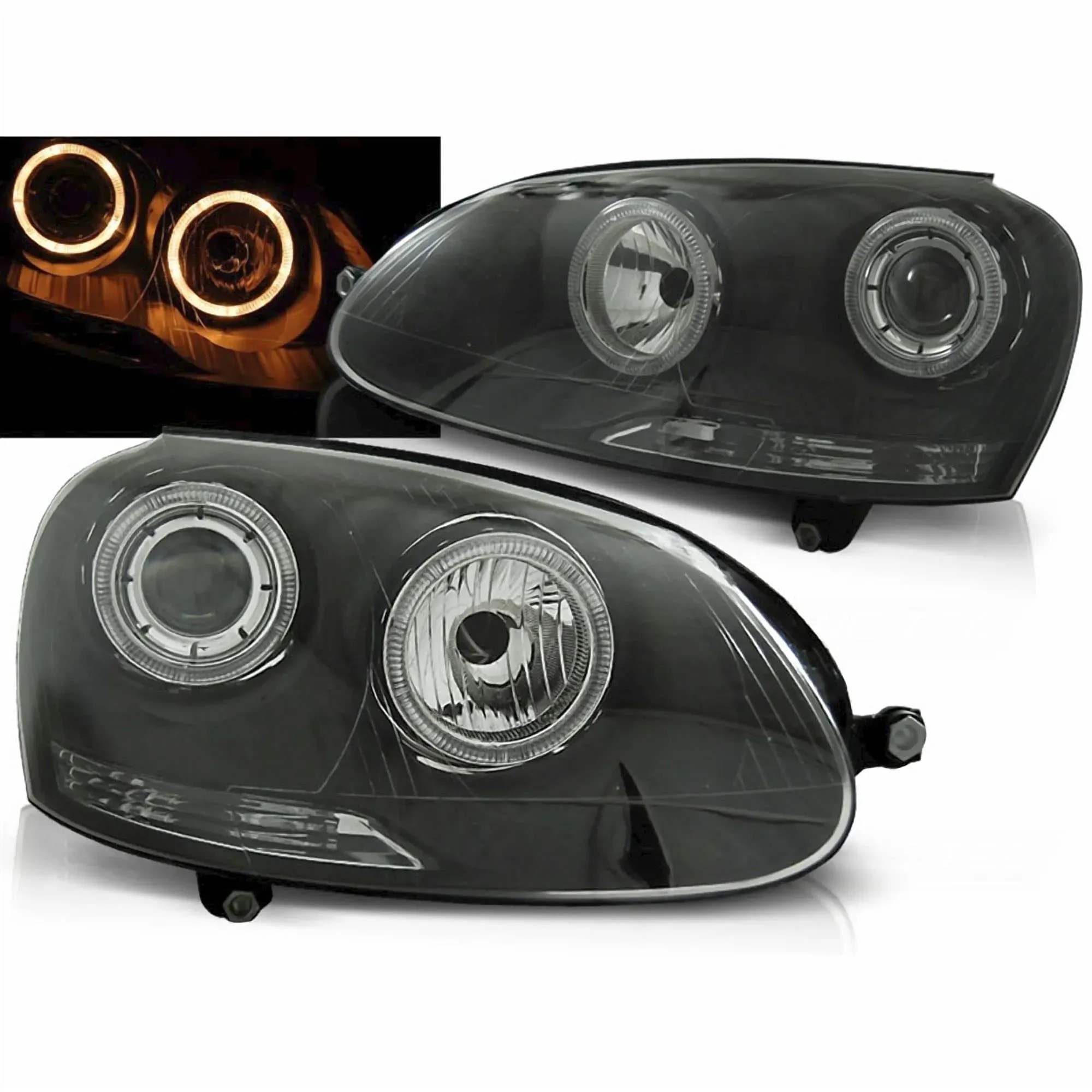 EAN: 4250366353173 - Scheinwerfer VW GOLF 5 03 09 GTI Xenon Look Schwarz Osram H7 Nightbreaker Laser Ausführung: Schwarze Scheinwerfer, GTI Optik2teiliges Set, Fahrer- und Beifahrerseiteinkl. Stellmotor für elektrische LeuchtweitenregulierungEintragungsfrei mit E-Prüfzeicheninkl. Leuchtmittel: 4x H7 Osram NightBreaker LaserHinweise und Einschränkungen:für VW Golf 5 1K, Mod. Bj. 10/03-6/09für VW Jetta 3 1K, Mod. Bj. 8/05-10/10nicht für Fahrzeuge mit Xenon geeignet Weitere ArtikelmerkmaleMarke: TYC, OSRAMHersteller: TYC Europe b.v.Herstellernummer: 20-0317-35-2+0318-35-2-1Einbauposition: vorne, links, rechtsProduktgruppe: BeleuchtungProdukttyp: Scheinwerfer, Hauptscheinwerfer, FrontscheinwerferFarbe: SchwarzLampentyp: H7Leuchtweitenregulierung: elektrischZulassung: Eintragungsfrei, E-PrüfzeichenPassend für folgende Modelle:ModelBaujahrMotorVW Golf V 1.4 16V05-2006 - 11-200880 PS (59 KW)VW Golf V 1.4 16V10-2003 - 05-200675 PS (55 KW)VW Golf V 1.4 FSI10-2003 - 07-200690 PS (66 KW)VW Golf V 1.4 TSI11-2005 - 11-2008170 PS (125 KW)VW Golf V 1.4 TSI05-2007 - 11-2008122 PS (90 KW)VW Golf V 1.4 TSI05-2006 - 11-2008140 PS (103 KW)VW Golf V 1.601-2004 - 11-2008102 PS (75 KW)VW Golf V 1.6 FSI10-2003 - 07-2008115 PS (85 KW)VW Golf V 1.6 MultiFuel10-2007 - 11-2008102 PS (75 KW)VW Golf V 1.9 TDI10-2003 - 11-2008105 PS (77 KW)VW Golf V 1.9 TDI05-2004 - 11-200890 PS (66 KW)VW Golf V 1.9 TDI 4motion08-2004 - 11-2008105 PS (77 KW)VW Golf V 2.008-2006 - 11-2008116 PS (85 KW)VW Golf V 2.0 ... Dieses CR-Lights Angel Eyes Scheinwerfer Set in Schwarz ist eine beliebte Tuning-Option, die dem Fahrzeug eine sportliche Ästhetik verleiht. ![]() ![]() CR-Lights Angel Eyes Scheinwerfer Set in schwarz für VW Golf 5 10.2003-2009