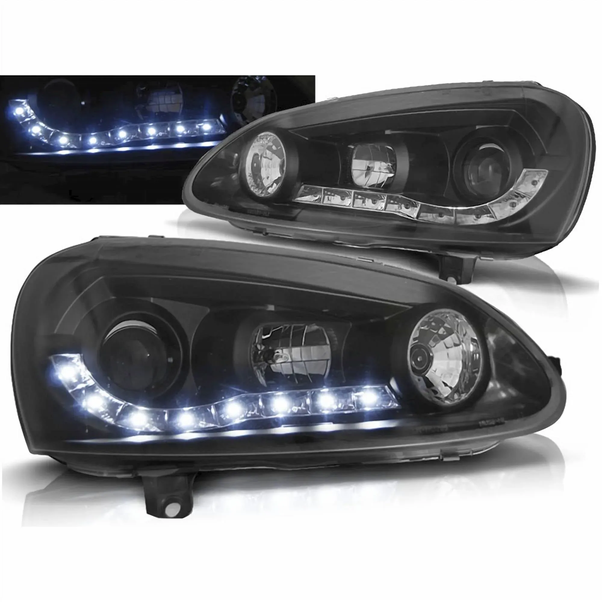 Verfügbarkeit: Auf Lager - Kategorie: Frontscheinwerfer - CR-Lights - GTIN:4260613698063 - E-Prüfzeichen, eintragungsfrei und zugelassen. Alle Zulassungen sind am Produkt eingraviert und in ganz Europa gültig Plug And Play Stecksystem. Originale Haltepunkte und Stecker werden, für den einfachen Anschluss, genutzt. Der Einbau gestaltet sich dadurch einfach und schnell. Setpreis bestehened aus der linken und rechten Seite. Hochwertige Verarbeitung und Passgenauigkeit - 304,95 Euro bei Amazon Marketplace Automotive - gefunden von billiger.de Dieses Tuning Tec LED Tagfahrlicht Scheinwerfer Set im Golf 6 Design bietet eine moderne Optik und verbesserte Sichtbarkeit. ![]() ![]() Tuning Tec LED Tagfahrlicht Scheinwerfer für VW Golf 5 03-09 im Golf 6 Design