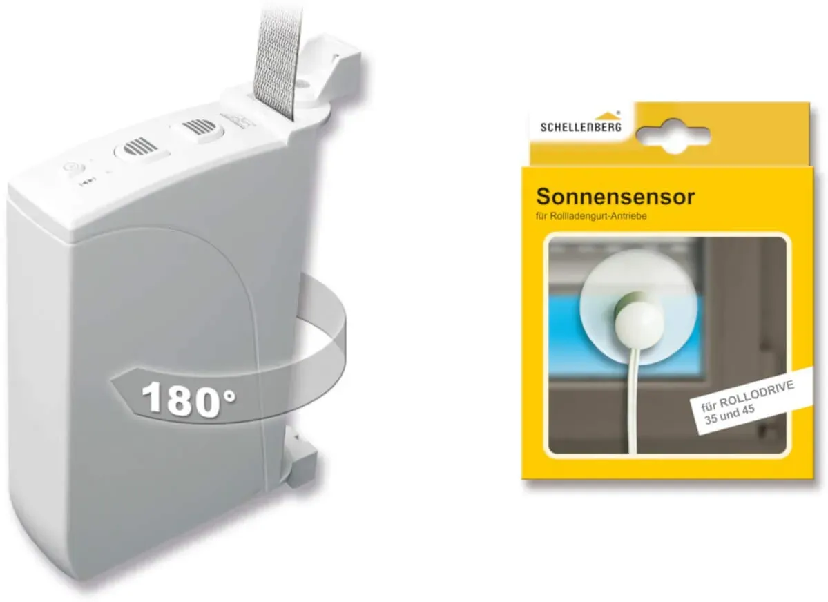 ![]() ![]() Schellenberg 22735 Elektrischer Gurtwickler RolloDrive 35 + Sonnensensor 22746, System Mini für 14 mm Gurtbreite, Rolladenantrieb