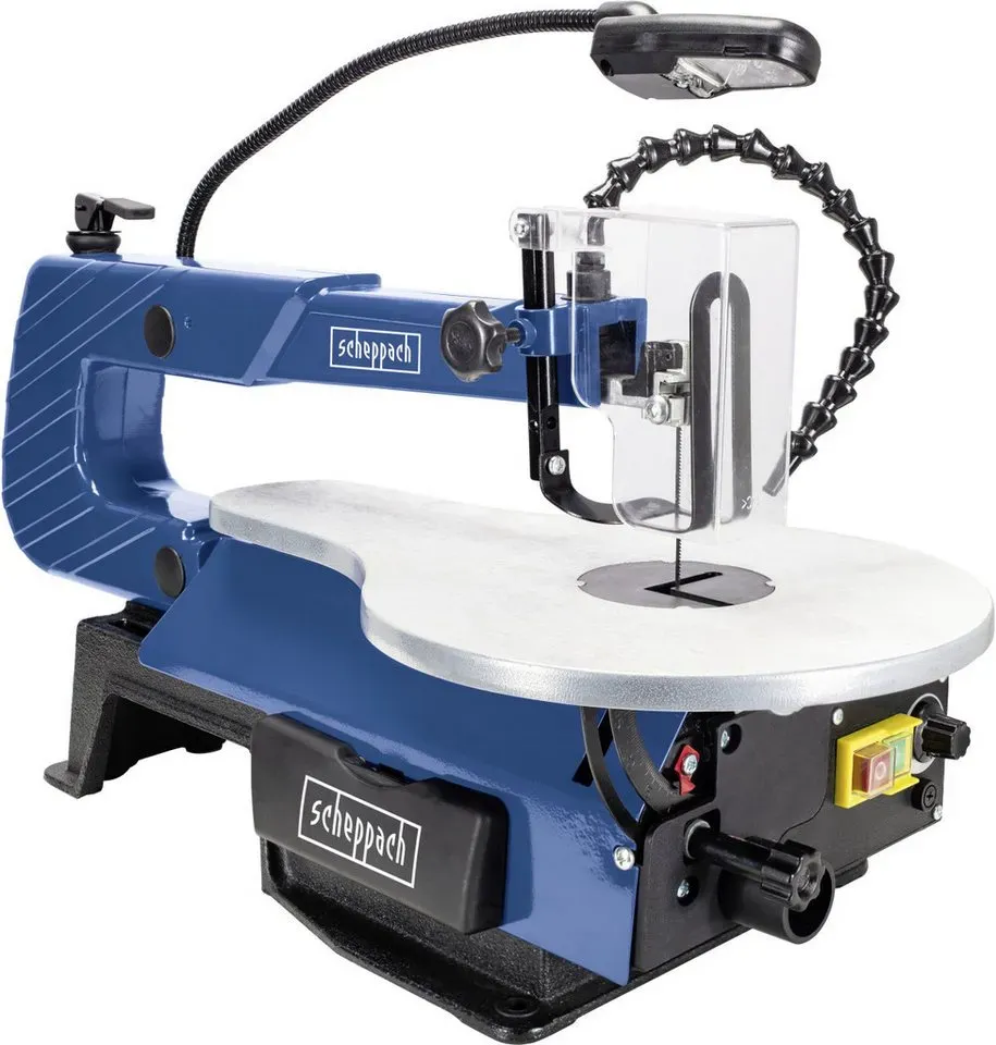 lieferbar-in 2-3 Werktagen bei dirScheppach Dekupiersäge SD1600V, Solo Maschine ohne Zubehör, 406mm Schnitttiefe mit variabler Drehzahl blau|silberfarben