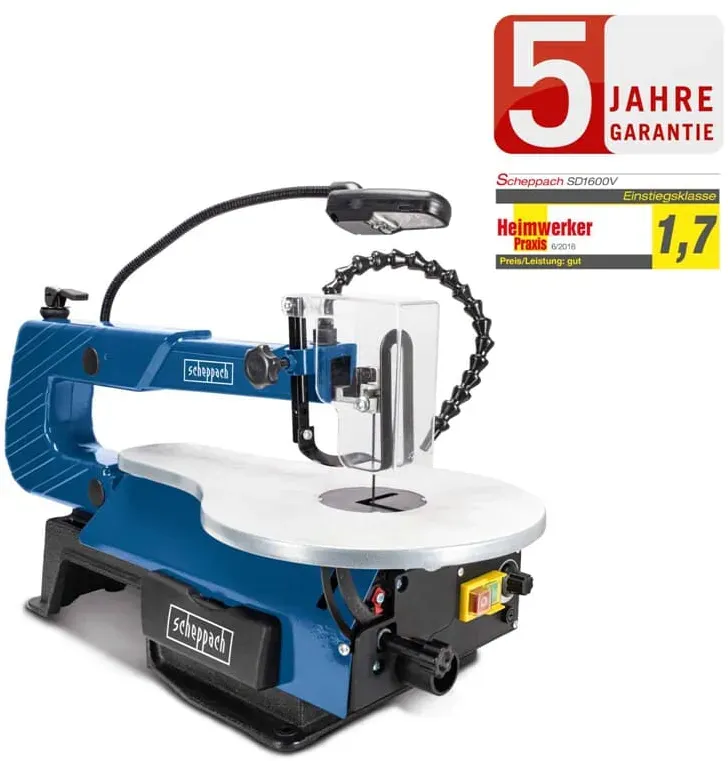 Kategorie: Dekupiersägen - SCHEPPACH - GTIN:4046664037040 - Produktdetails Ausstattung , Flexible LED-Arbeitsleuchte Neigbarer Arbeitstisch (0 45 ) für Gehrungsschnitte Variable Hubzahl (500 1.700 min 1) und 12 mm Hubhöhe Schnellspannhebel für schnellen Sägeblattwechsel Aufnahme für Stift- und Standard-Laubsägeblätter (127 134 mm) Vibrationsarmer Lauf für exakte Schnitte Flexible Gebläsedüse für freie Sicht auf den Arbeitsbereich, Geeignete Werkstoffe , Holz Kunststoff Metall, Set beinhaltet , 1x Dekupiersäge SD1600V, Betriebsart , Netzkabel, Farbe & Material Farbe , blau-silber, Material Gehäuse , Stahl, Material Arbeitstisch , Aluminum, Technische Daten WEEE-Reg.-Nr. DE , 24957151, Schnitttiefe Holz maximal , 406 mm, Stromversorgung Art Stromversorgung , Netzanschluss, Batterie-/Akku-Technologie , Keine, Hinweise Lieferumfang , 1x Dekupiersäge SD1600V, - 99,90 Euro bei OTTO - gefunden von billiger.de ![]() ![]() Scheppach Dekupiersäge SD1600V Modellbausäge 120W Leistung | 50mm Durchlasshöhe und flexibler Gebläsedüse | Variable Hubzahl 500 1700 min-1 | LED Licht