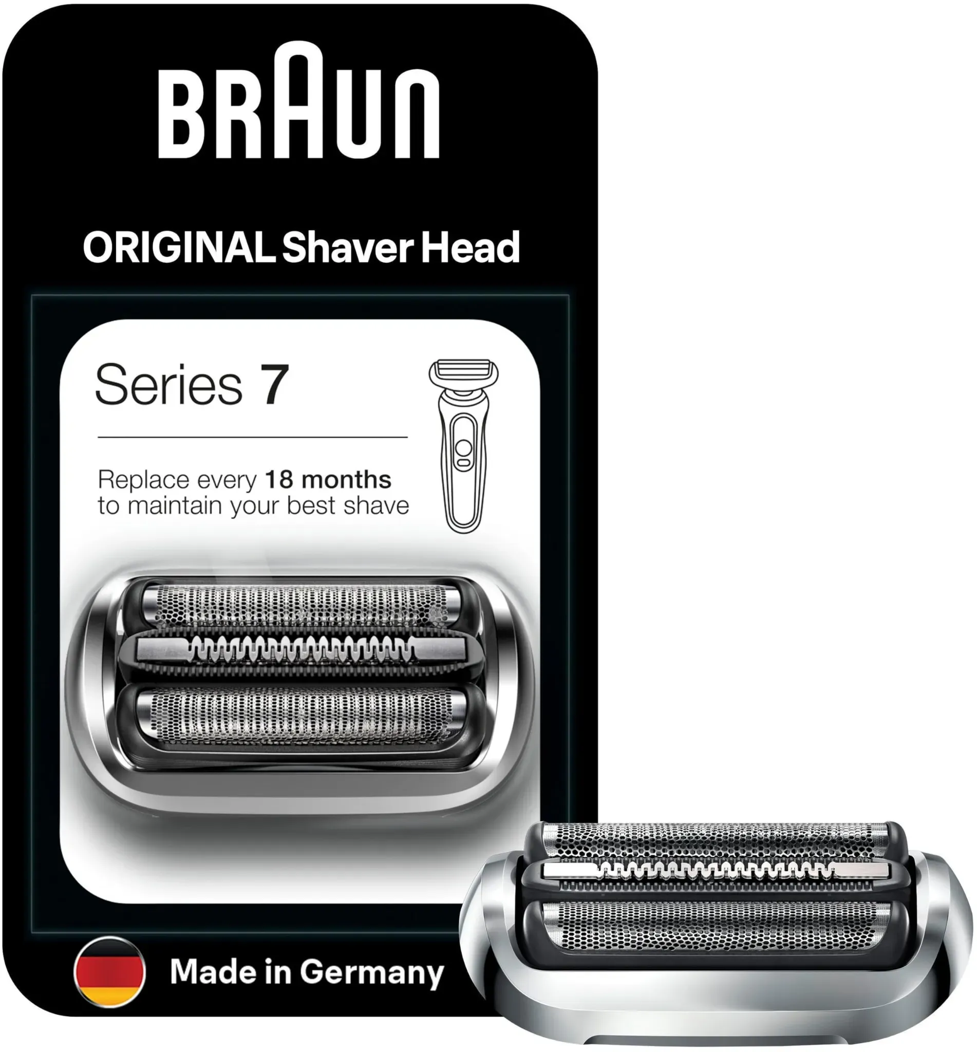 4 Händlerangebote bei billiger.de - Kategorie: Rasierzubehör - Braun - Um weiterhin ein optimales Rasurergebnis zu erzielen, empfehlen wir Ihnen, den Scherkopf des Series 7 Rasierer Herren alle 18 Monate auszutauschen In 18 Monaten schneidet Ihr elektrischer Rasierer von Braun über 6 Millionen Haare, was die Schneideleistung allmählich reduziert Durch das regelmäßige Austauschen des Scherkopfs bleibt der Elektrorasierer für viele Jahre in bestem Zustand; Eine kleine Investition und Ihr Rasierer ist wieder wie neu Eine kleine Investition und Ihr Rasierer ist wieder wie neu In Deutschland hergestellt - GTIN:4210201182009 Dieser Original Braun Scherkopf ist mit 37.98 Euro eine hochwertige und langlebige Wahl für Ihre Series 7. ![]() ![]() Braun Scherkopf 74S ORIGINAL Scherkopf für Braun Series 7 Elektrorasierer - Schwarz