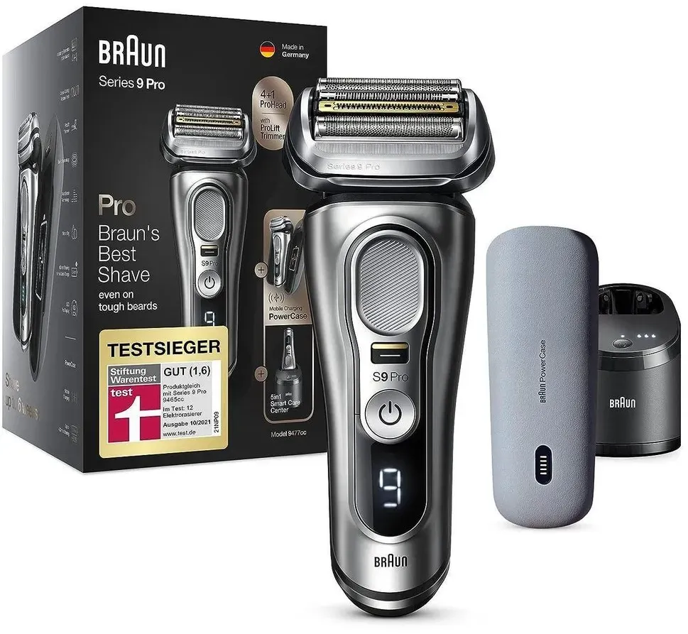 Verfügbarkeit: Auf Lager - Kategorie: Elektrische Rasierer - Braun - GTIN:8700216050197 - Effizient und sanft, egal ob 1-, 3- oder 7-Tage-Bart: Dieser Trockenrasierer für Herren, der über den einzigartigen ProLift Trimmer verfügt, hebt schwer zu erreichende Haare an und schneidet siä™ Effizienter (ggü. dem vorherigen Braun Series 9) und sanft: Der innovative ProLift Trimmer und die einzigartige Braun Sonic-Technologie helfen, bis zu 10% schneller (ggü. dem vorherigen Braun S9) zu rasieren und gleichzeitig sanft zur Haut zu sein Mit Braun 5-in-1 Reinigungsstation (SmartCare Center): Für einen Rasierer, der jeden Tag wie neu ist €“ auf Knopfdruck Hergestellt in Deutschland: Dieser Elektrorasierer ist zu 100% wasserdicht und kann mit Schaum, Gel oder sogar unter der Dusche verwendet werden - 279,00 Euro bei Amazon Marketplace Automotive - gefunden von billiger.de Dieser Premium-Rasierer der Braun Series 9 Pro bietet ein PowerCase und eine Reinigungsstation für maximalen Komfort und Pflege. ![]() ![]() Braun Series 9 Pro Premium Rasierer Herren mit 4+1 Scherkopf, Elektrorasierer & ProLift Trimmer, PowerCase, 5-in-1 Reinigungsstation, 60 Min Laufzeit, Made in Germany, 9477cc, silber