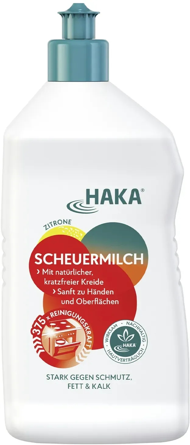 4 Händlerangebote bei billiger.de - Kategorie: Reinigungsmittel - HAKA - UMWELT- & HAUTFREUNDLICH: HAKA steht für haut- & umweltfreundliche Produkte. Das Scheuermittel auf Basis natürlicher Kreide ist materialschonend und besonders hautverträglich - dermatologisch mit ,,Sehr Gut' bewertet. REINIGUNG: Wasserflecken, Kalkflecken & Fettflecken in Bad und Küche werden mit wenig Kraftaufwand und ohne zu verkratzen entfernt. Bringen Sie Badewannen, Dusche, Waschbecken, Herd, Kacheln / Fliesen zum Strahlen. VERWENDUNG: Durch den Putzkörper aus natürlicher Kreide mit abgerundeten Kanten und sehr feiner Struktur können keine Kratzer auf Oberflächen entstehen - selbst bei der Reinigung von empfindlichen Oberflächen. ANWENDUNGSGEBIETE: Die Scheuermilch kann auf allen Oberflächen aus Kunststoff, Edelstahl und Emaille verwendet werden. Nicht geeignet für Oberflächen mit Lotus-Effekt. TIPPS & TRICKS: Der ideale Küchenreiniger, Badreiniger oder Allzweckreiniger kann auch zum Reinigen von Turnschuhen oder Fensterrahmen verwendet werden. - GTIN:4045607003418 Diese Scheuermilch ist eine hautfreundliche und vegane Option, die mit natürlicher Kreide reinigt. ![]() ![]() HAKA Scheuermilch, 750 ml, entfernt Kalk, Fett & Schmutz, ohne Kratzer, materialschonende Reinigung mit natürlicher Kreide, hautfreundlich, vegan, Zitronenduft