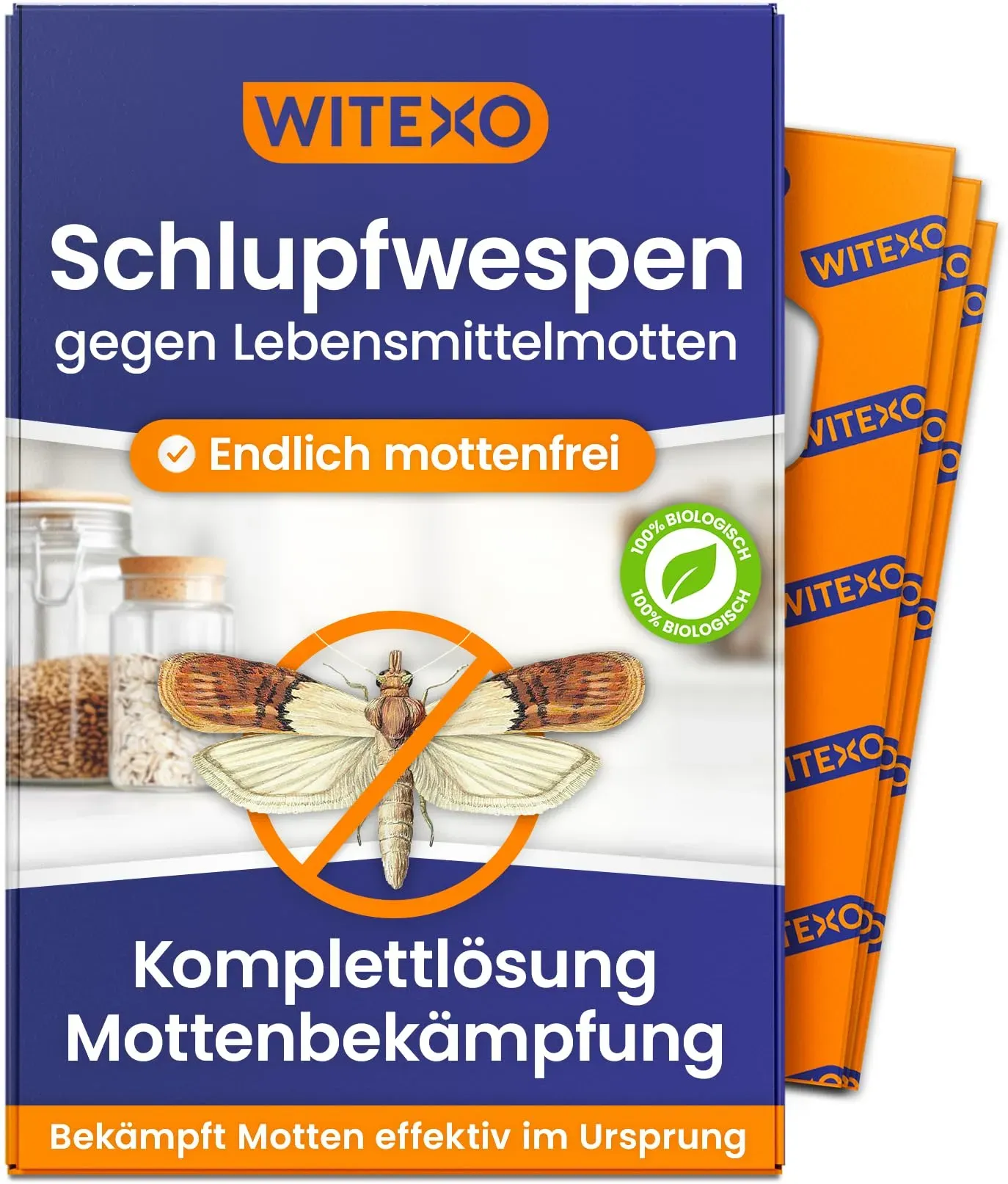 Zustand: Neu - Mottenabwehr - HILDE Mottenshop24 - amz1108 - EAN: 0301660673208 - - Verkäufer: Mottenshop24 im amazon.de Marketplace Ein umfangreiches Paket für eine langfristige und großflächige Bekämpfung von Lebensmittelmotten. ![]() ![]() Witexo Schlupfwespen gegen Lebensmittelmotten und Kleidermotten | Motten bekämpfen (8 Karten je Lieferung, Lebensmittelmotten bekämpfen (4 Lieferungen))