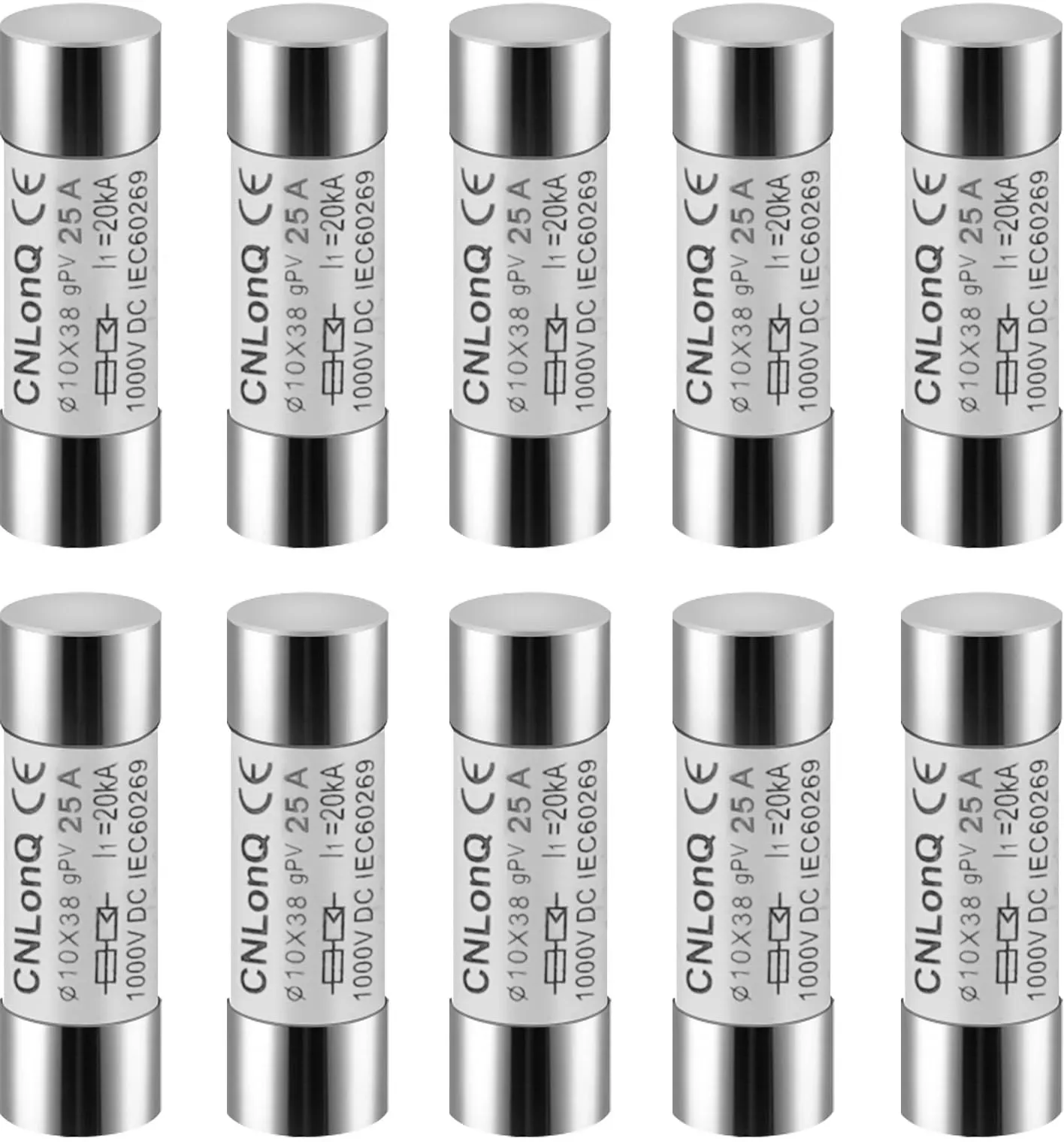 Zustand: Neu - Sicherungen - AUKENIEN - DII E27 R021 €ŽAK-DII Fuses-25A-10pcs - - AUKENIEN Spirale-Keramik-Sicherungen: DII E27 R021 Nennstrom: 25A; Nennspannung: 500V; Ausschaltvermögen: 50KA. Betriebsklasse: gG (Geräteschutz über den gesamten Bereich) Spirale Keramik Sicherungen Größe: 22mm*48,5mm. Material: Keramik, Metall. Stabiler Leistung und Gute elektrische Leitfähigkeit LEITUNGSSCHUTZ - Wenn der Strom einen bestimmten Wert überschreitet, wird die Sicherung automatisch durchbrennen, wodurch der Strom unterbrochen und die Sicherheit des Stroms gewährleistet wird. Schmelzsicherung wird häufig in verschiedenen elektrischen Geräten verwendet Was Sie Erhalten: 10 Stück 25A DII E27 R021 Spirale Keramik Sicherung erfüllt Ihr gebrauchsbedarf. Alle Sicherungen sind zur einfachen aufbewahrung in einer stabilen kunststoffbox verpackt - Verkäufer: AUKENIEN Official EU im amazon.de Marketplace Diese speziellen Solarsicherungen sind für Photovoltaik-Anlagen konzipiert und bieten den nötigen Schutz für DC-Systeme. ![]() ![]() DEWIN Photovoltaik Sicherung, 10 Stück Solarsicherung gPV Type Keramik Sicherung HSPV-30 10x38mm Feinsicherung Schmelzsicherungen für Solar PV Anlage 25A DC 1000V