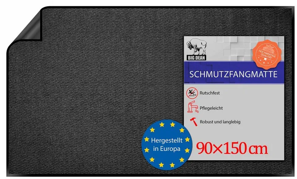 lieferbar-in 5-6 Werktagen bei dirBigDean Fußmatte Schmutzfangmatte 90x150 cm Anthrazit rutschfeste Made in Europe, Höhe: 0.3 mm