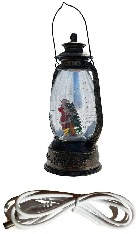 lieferbar-in 3-4 Werktagen bei dirfoolonli LED Laterne Schneekugel elektr Laterne 27cm LED Musik Timer Weihnachtsmann Tanne goldfarben