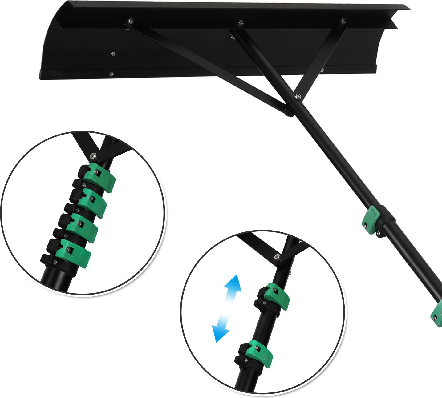 EAN: 9121321662751 - Ausziehbarer Dachschneerechen4-teiliger TeleskopstielRutschfeste SicherheitMühelose SchneeräumungKein Aufsteigen auf das DachGeeignet für Sonnenkollektoren Hauptverkaufsargumente: Sichere Bedienung vom Boden aus, kein AufsteigenDas 4-teilige Teleskopdesign lässt sich auf bis zu 360 cm/480 cm ausziehen! Räumen Sie den Schnee vom Dach vom Boden aus und vermeiden Sie so vollständig die mit dem Aufsteigen auf das Dach verbundenen Rutschgefahren für sorgenfreie Sicherheit. Breiter Rechenkopf, effiziente SchneeräumungDer 70 cm extrabreite Rechenkopf aus Aluminiumlegierung räumt größere Schneemengen in einem Durchgang. In Kombination mit einem rutschfesten Griff und einer dreieckigen Stabilisierungsstruktur ist die Schneeräumung mühelos. Dachschutz, GerätesicherheitWeiche Gummistreifen entlang der Kanten der Schaufel verhindern Kratzer auf der Oberfläche beim Schneeräumen, bei Sonnenkollektoren oder Laub wirklich vielseitig einsetzbar. Leicht, langlebig, schnelle MontageHochwertige Aluminiumlegierung + PC-Konstruktion bietet Korrosionsbeständigkeit und Rostschutz und kombiniert geringes Gewicht mit hoher Tragfähigkeit. Die modulare Montage ermöglicht das Festziehen und die Verwendung innerhalb weniger Minuten. Wirtschaftlich und praktisch, langfristige Einsparungen Durch die Selbstbedienung bei der Schneeräumung entfällt der Bedarf an Arbeitskräften, wodurch kostspielige Arbeitskosten eingespart werden. Ein einziger Kauf sorgt für jahrelangen Gebrauch und ... Ein vielseitiger GOPLUS Schneeschieber mit Rollen, der sich auch für Blätter und Schmutz eignet. ![]() ![]() GOPLUS Schneeschieber Dach, Einstellbereich 160-610cm, Schneeschaufel Aluminium leicht mit Teleskopstiel, Dachräumer mit großer Klinge, TPR-Griff & Rollen für Schnee, Blätter & Schmutz