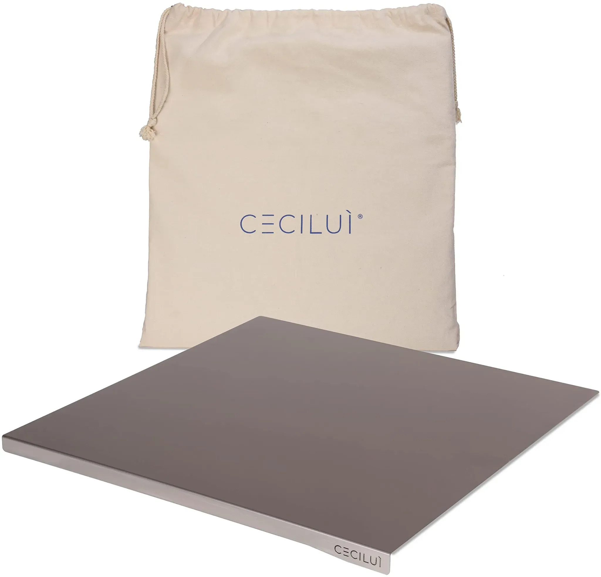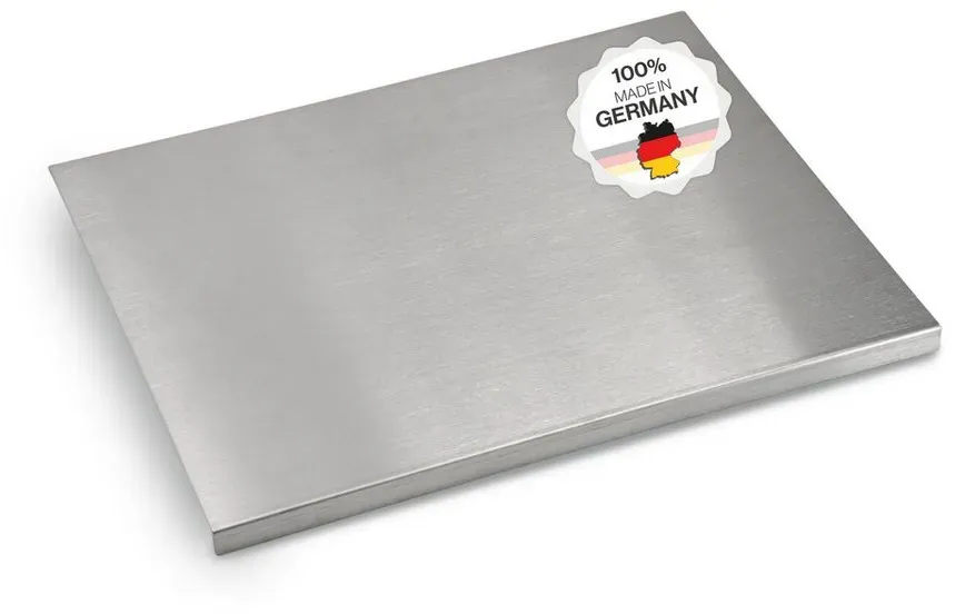 lieferbar-in 7-9 Werktagen bei dirFeuerfest 123 GmbH Schneideunterlage Schneidebrett / Knetbrett aus Edelstahl - mit Anschlagkante, Für Kneten, Schneiden & Backen 100 % Made in Germany 50 cm x 40 cm x 2 cm