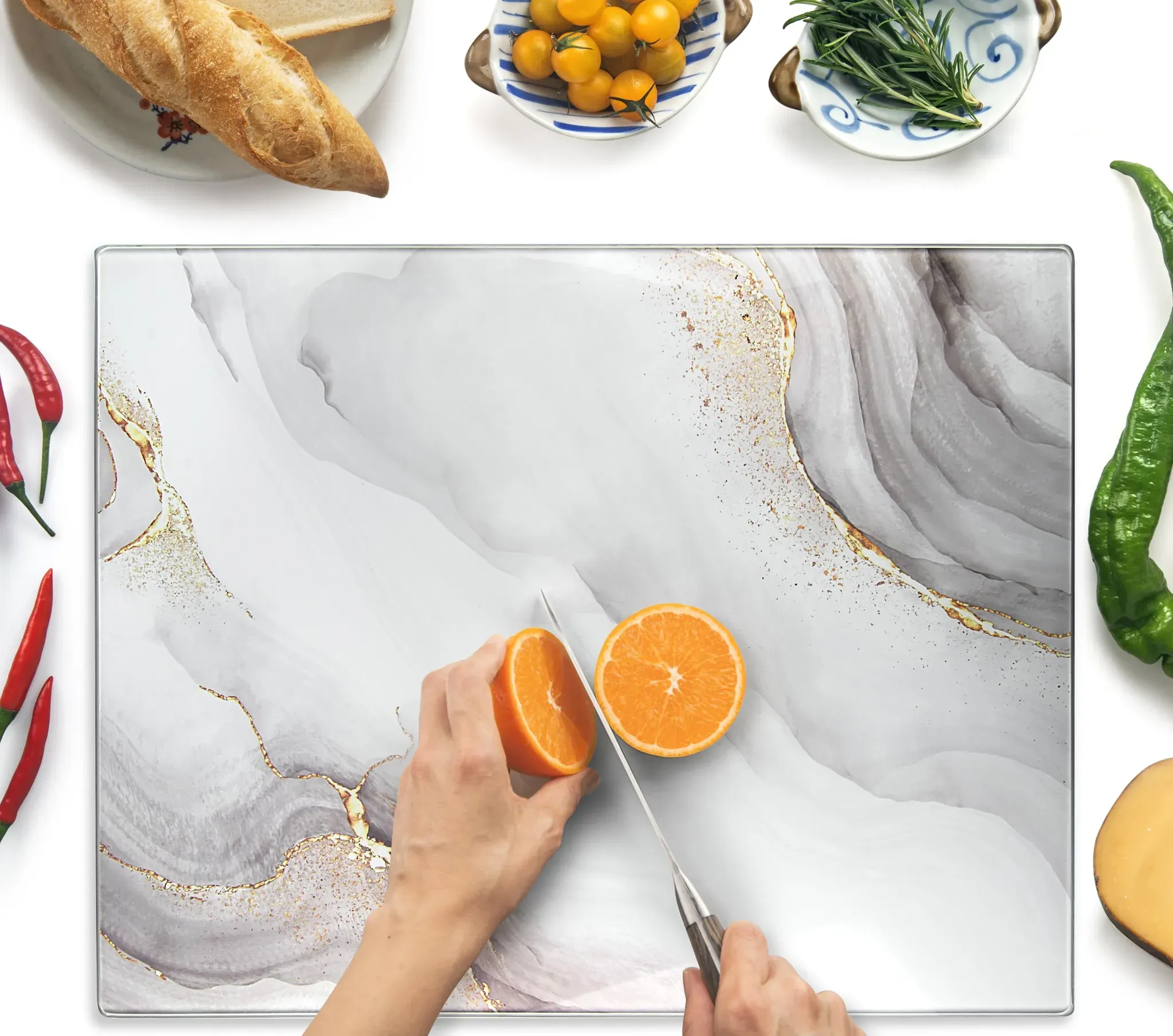 Kategorie: Schneidebretter - Koopmann International b.v. - GTIN:8719987080449 - - großes rundes Servierbrett mit Griff - Material: Mangoholz - ein massives und hartes Stück Holz - sehr robust, widerstandsfähig gegen Feuchtigkeit und Verformung - das Brett eignet sich nicht nur zum Schneiden, sondern auch zum Servieren verschiedener Speisen - geöltes Mangoholz hat eine schöne Maserung - leicht zu reinigen, schnell trocknend, Handwäsche sorgt für eine sehr lange Lebensdauer - Maße: 50 x 40 x 2 cm - 13,00 Euro bei Kaufland.de - gefunden von billiger.de Dieses Glas-Schneidebrett ist eine preiswerte und hygienische Option, die sich auch zum Servieren eignet. ![]() ![]()