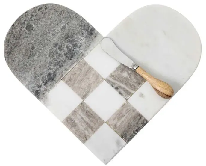 Kategorie: Schneidebretter - Bloomingville - GTIN:5711173310494 - Marcelline Schneidebrett in Herzform aus Marmor von Bloomingville Exquisites Bloomingville Schneidebrett aus grau-weißem Marmor Herzform für eine romantische Note in der Küche Perfekt als Servierbrett oder Tapasbrett geeignet Wird mit einem kleinen Buttermesser geliefert Maße von 31 x 22 cm für vielseitige Anwendungsmöglichkeiten Produktbeschreibung Willkommen in der Welt des stilvollen Kochens mit dem Bloomingville Schneidebrett Marcelline! Dieses einzigartige Servierbrett vereint Funktionalität und ästhetik auf perfekte Weise. Hergestellt aus hochwertigem grau-weißem Marmor, fügt es sich nahtlos in jede Küche ein und wird zum Blickfang auf jedem Tisch. Die Herzform des Bretts verleiht deiner Küche eine romantische und verspielte Note und macht es gleichzeitig zu einem charmanten Dekorationsstück. Aber nicht nur das äußere zählt das Bloomingville Schneidebrett Marcelline ist auch äußerst praktisch. Mit einer Größe von 31 x 22 cm bietet es ausreichend Platz zum Schneiden, Servieren und Präsentieren von Speisen. Als besonderes Extra wird das Schneidebrett mit einem kleinen Buttermesser geliefert, das perfekt zu seinem eleganten Design passt. Ob du ein Hobbykoch bist, der gerne neue Rezepte ausprobiert, oder eine Küchenfee, die ihre Gäste mit kulinarischen Köstlichkeiten verwöhnt, das Bloomingville Schneidebrett Marcelline ist ein unverzichtbares Accessoire. Entdecke dieses zauberhafte Schneidebrett und ... Das größte Massivholz-Schneidebrett in Herzform von BERARD FRANCE, ideal für umfangreichere Schneidearbeiten oder als Servierplatte. ![]() ![]()