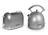 Auf Lager Versand durch AmazonSCHNEIDER Retro Line Frühstück-Set Silber, Toaster & Wasserkocher, 1,7 Liter, 360° Sockel & Überhitzungsschutz, Zwei Schlitz Toaster mit 6 Bräunungsstufen & Krümelschale